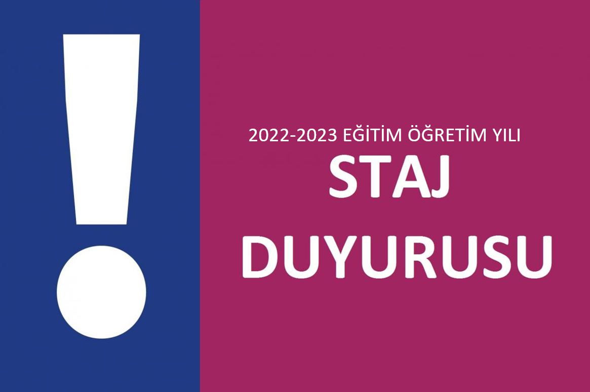2022-2023 Eğitim-Öğretim Yılı staj başvuru son tarihi 15 MAYIS 2023 olarak belirlenmiş olup ilgili tarihler arasında staj başvurularınızı yapabilirsiniz. Tarihle ve bilgilendirmelerle ilgili güncellemeleri Atça MYO sitesinin bu sayfasından lütfen takip ediniz. DİKKAT: Nisan ayının son haftasıyla birlikte kurum ve kuruluşlar çok fazla staj başvurusu almakta ve aşırı yüksek bir yoğunluk yaşanmaktadır. Dolayısıyla tavsiyemiz öğrencilerimizin en kısa sürede staj başvuru süreçlerini tamamlamalarıdır.