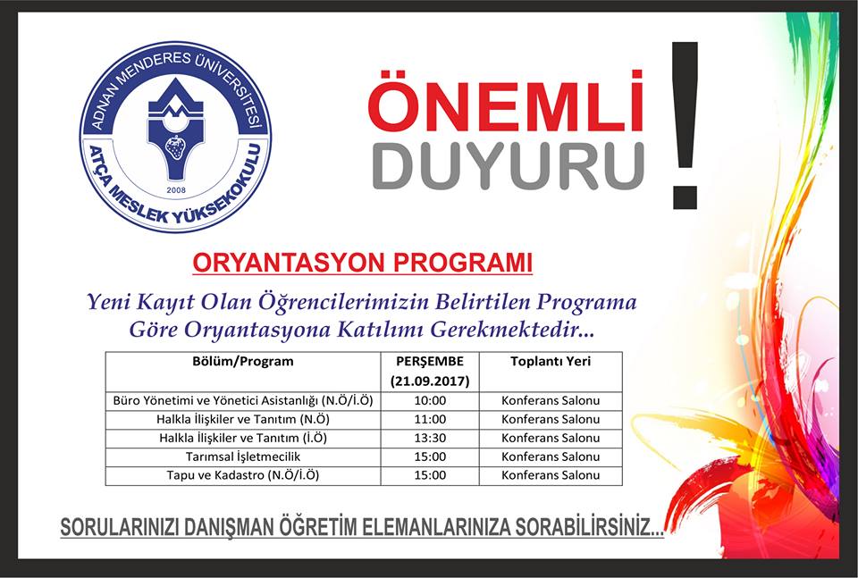 YENİ KAYIT OLAN ÖĞRENCİLERİMİZ İÇİN ORYANTASYON TOPLANTISI