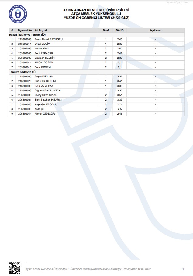 İtirazda bulunacak öğrencilerimiz ilanın yayınlandığı tarihten itibaren 10 iş günü içerisinde Meslek Yüksekokulumuz öğrenci işleri bürosuna yazılı olarak başvurabilirler.