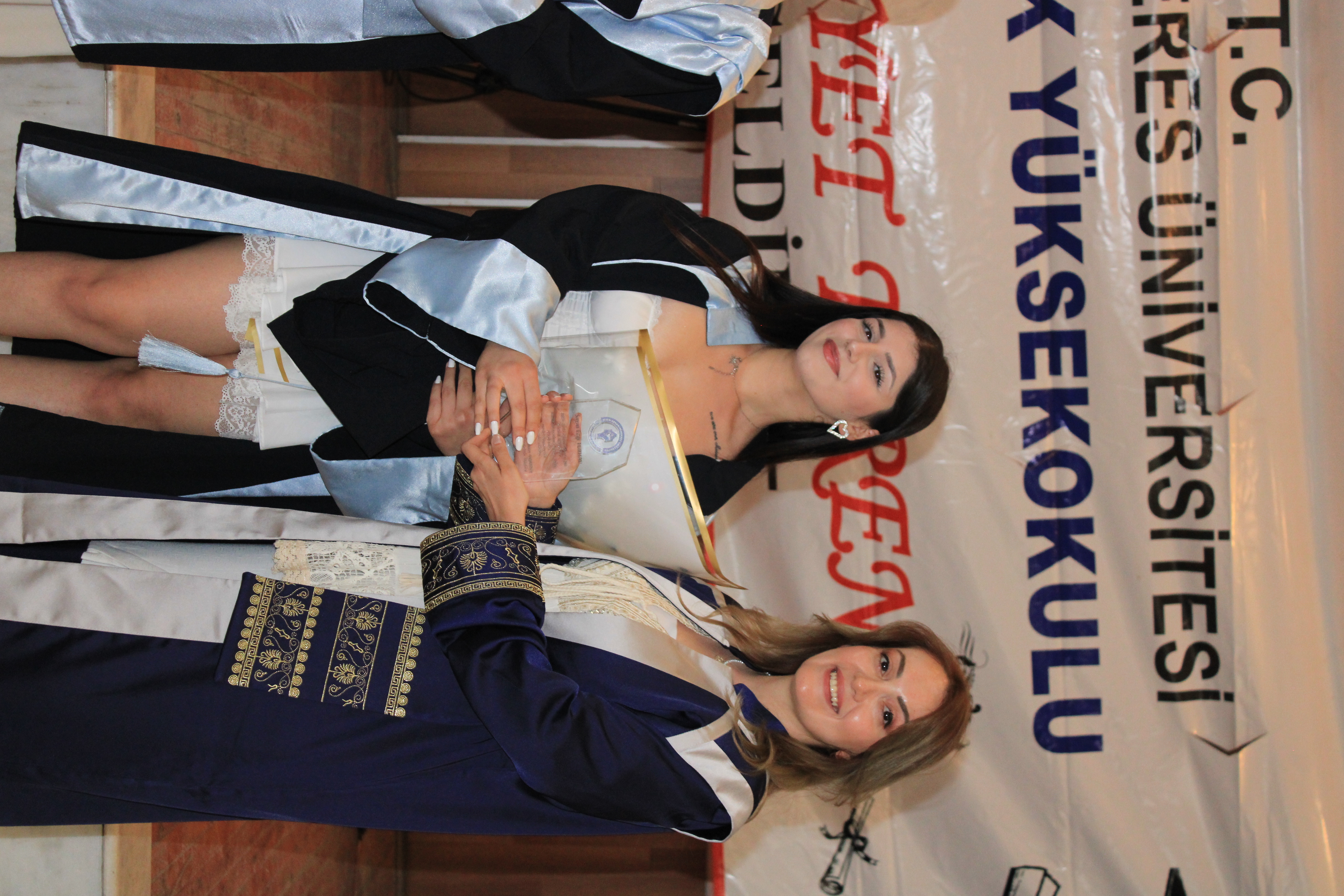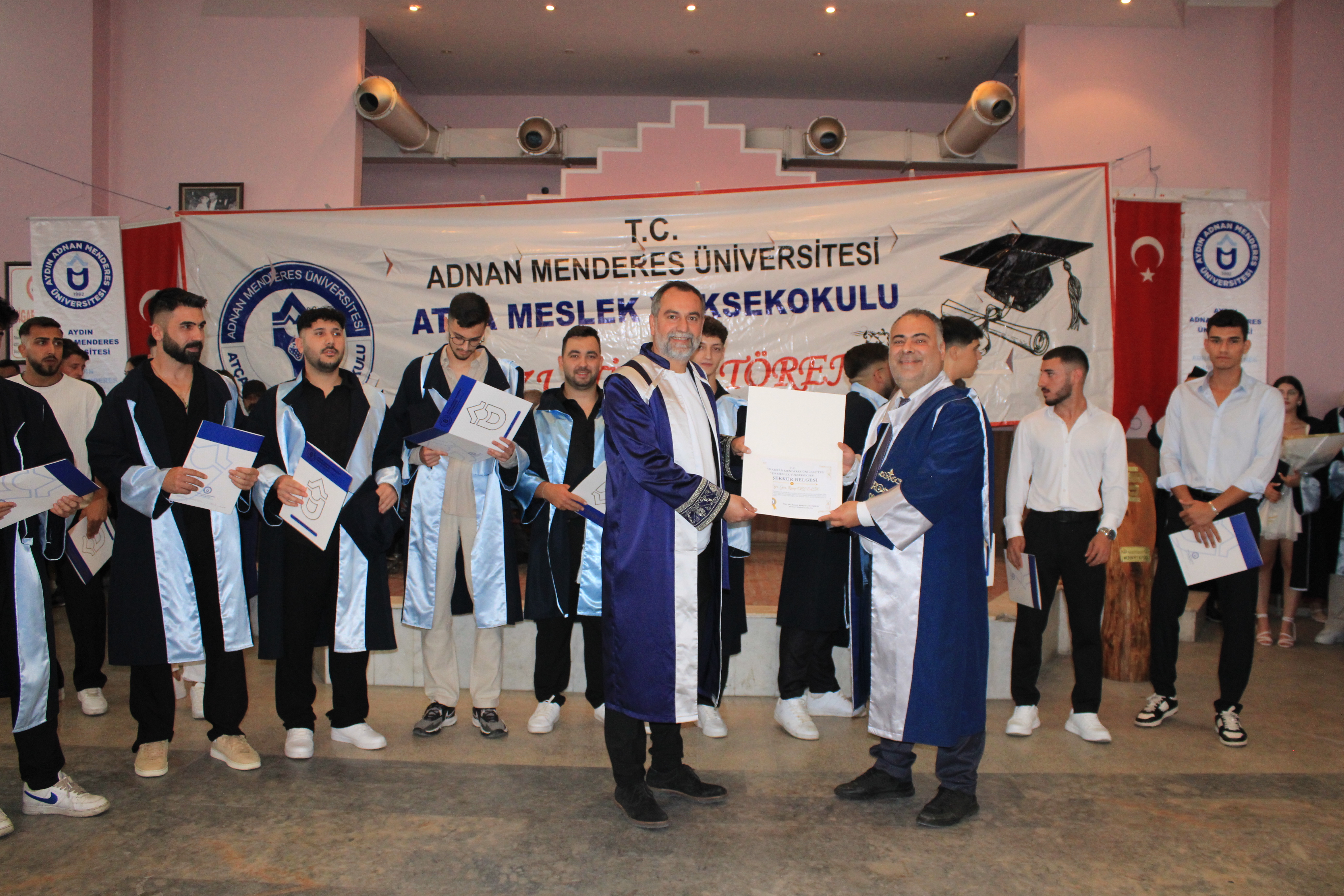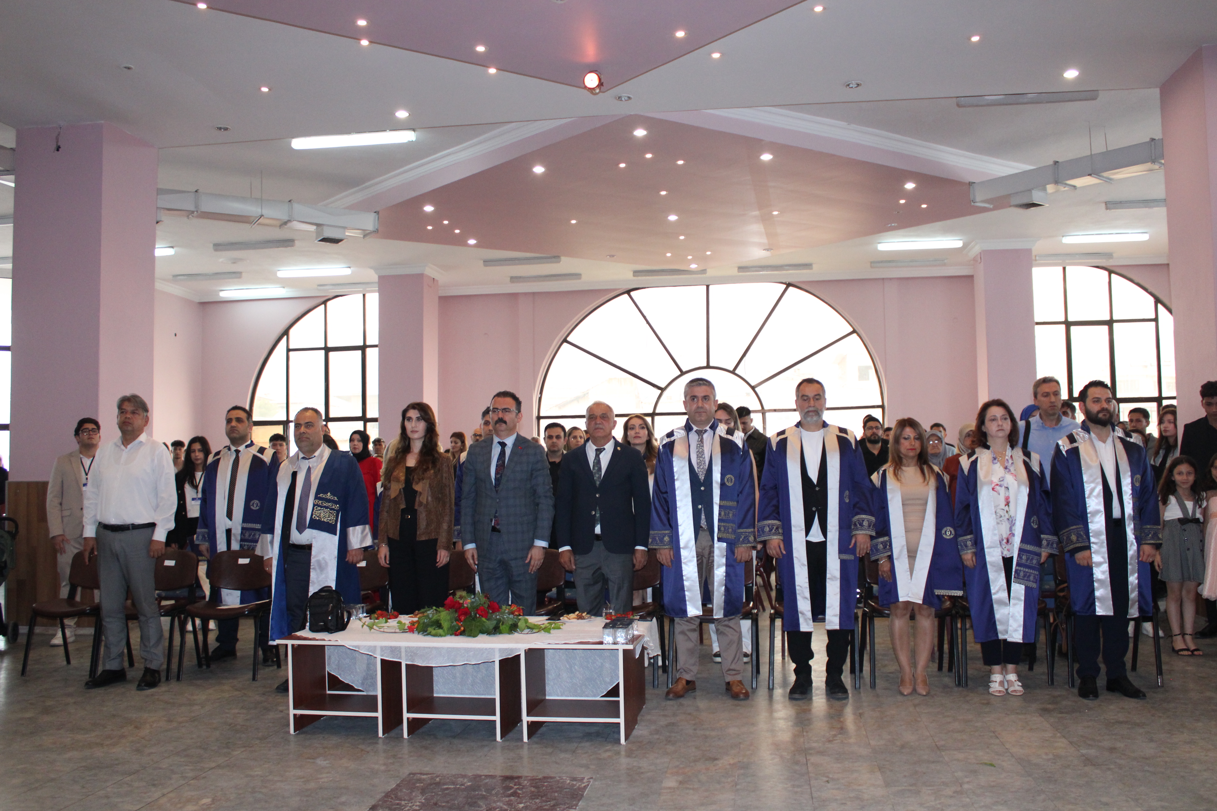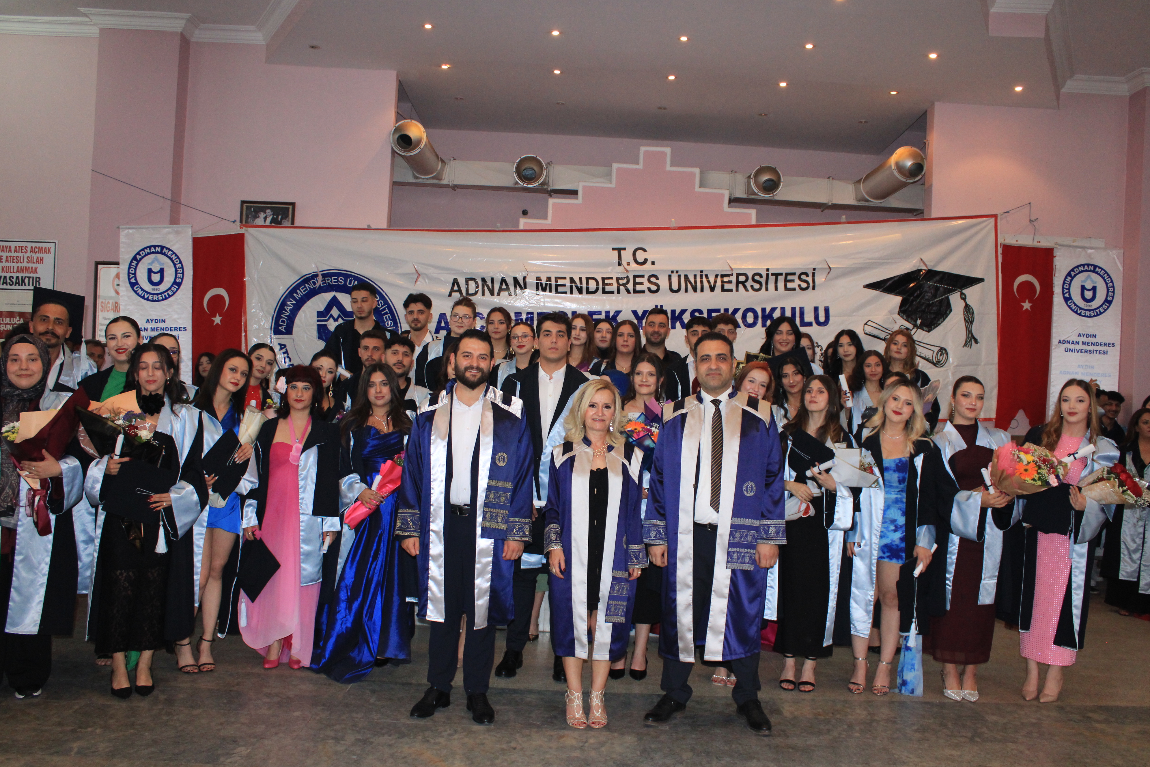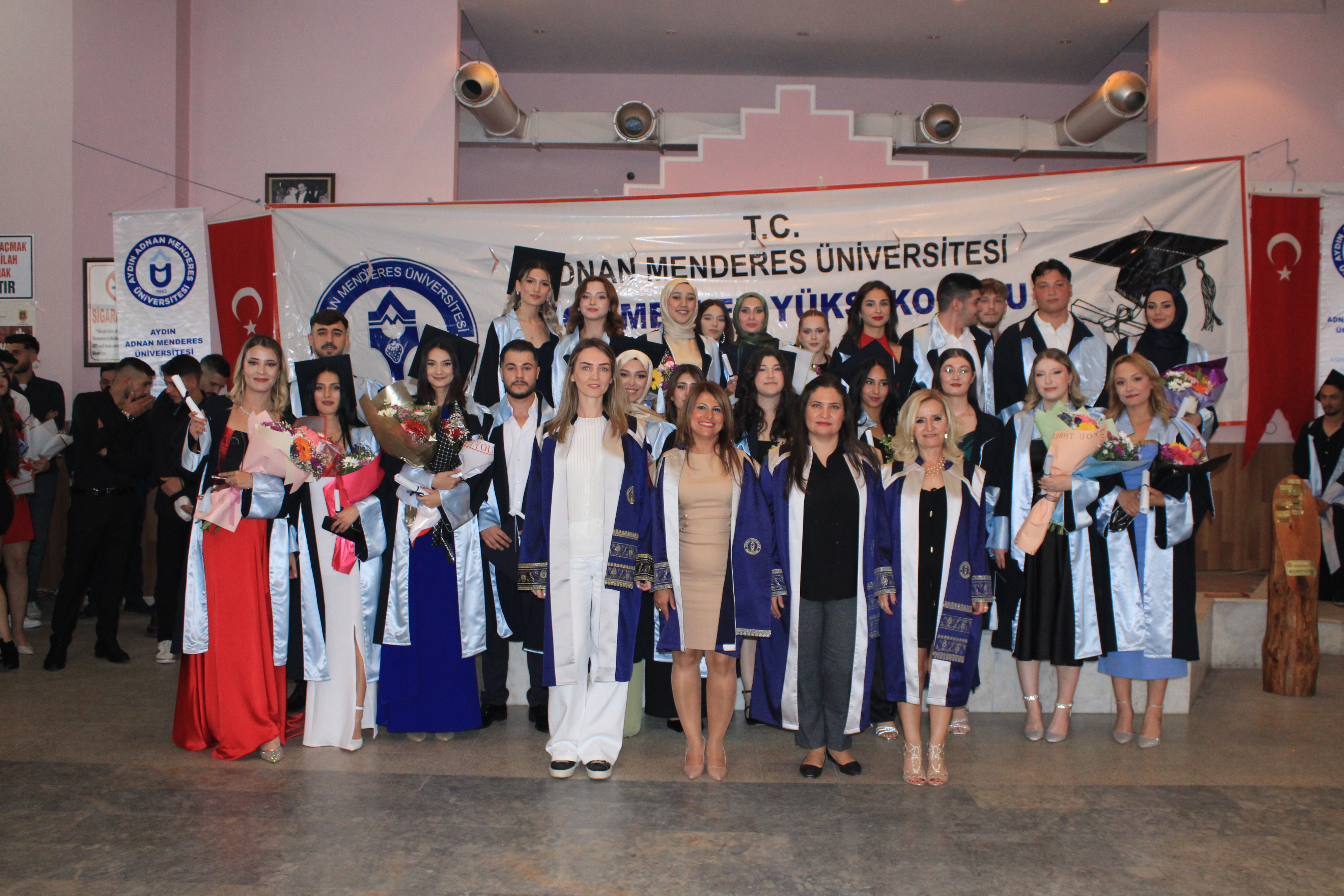 Saygı duruÅŸu ve İstiklal Marşı ile baÅŸlayan program, Yüksekokul birincisi Hayat Çınar’ın konuÅŸmasıyla devam etti. Ardından, geleneksel mezuniyet kütüÄŸüne isim çakma merasimi gerçekleÅŸtirildi. Sultanhisar Kaymakamı Ali Ekber AteÅŸ tarafından yüksekokul birincisi plaketle onurlandırıldı.
