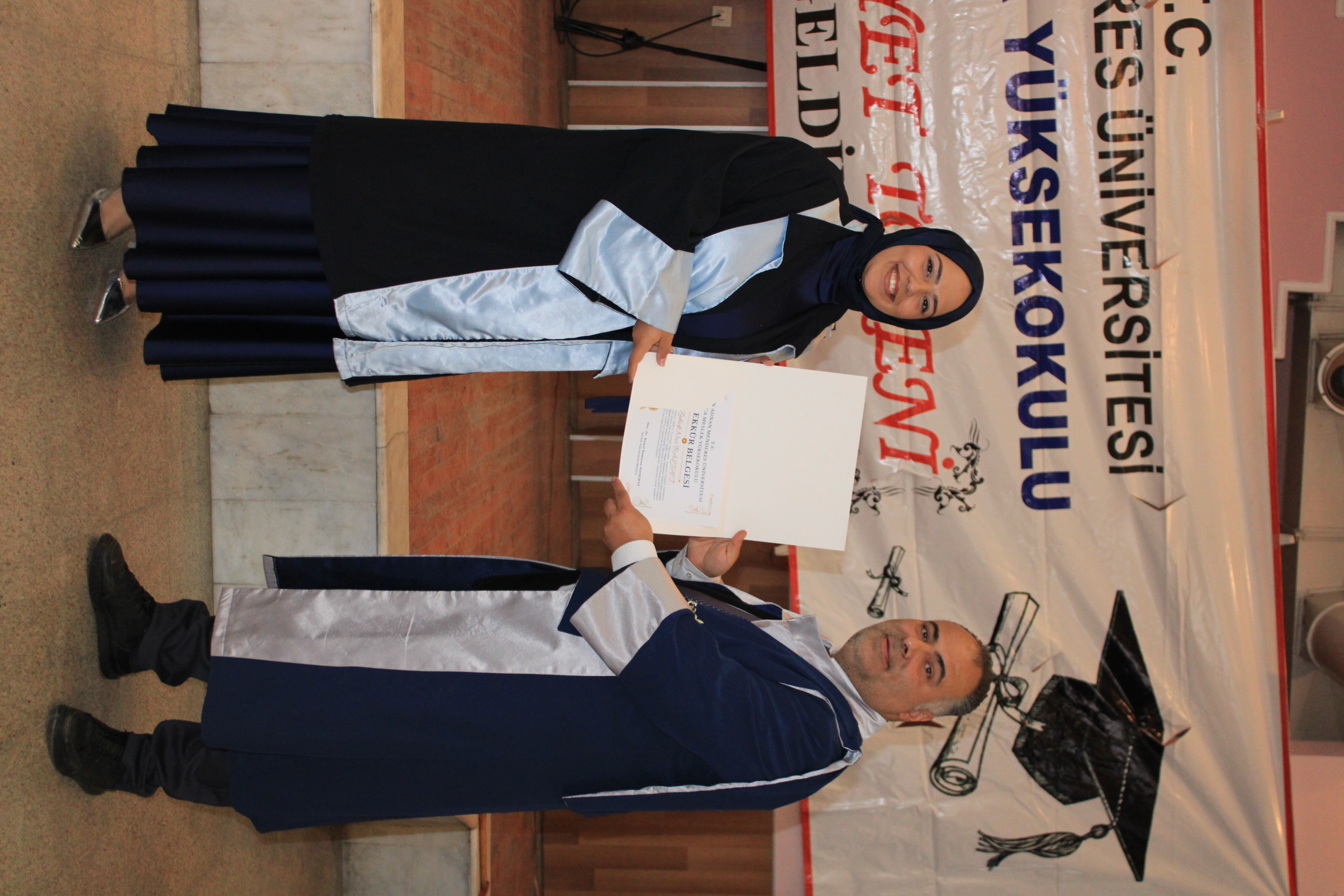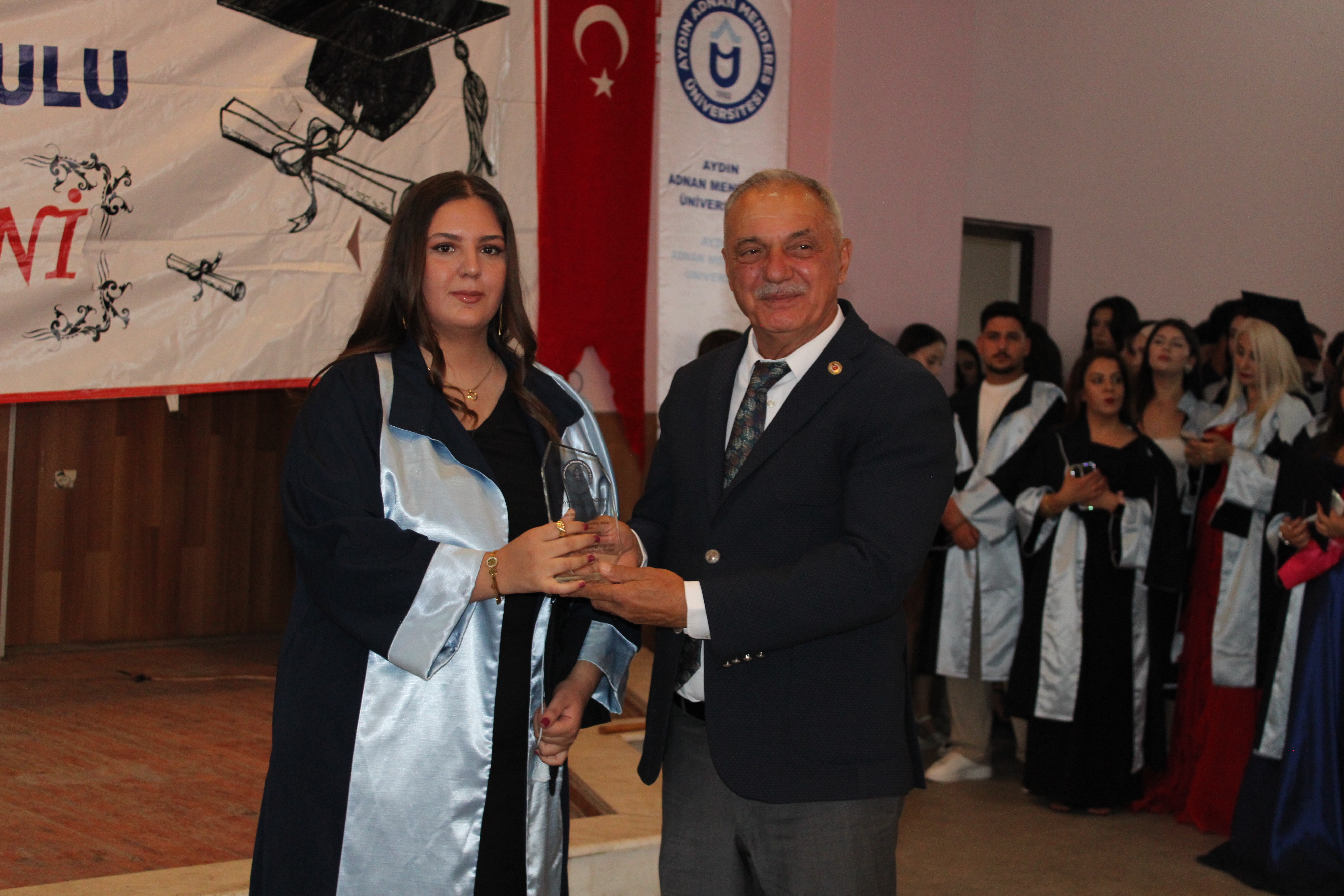 Dereceye giren mezun öÄŸrencilere plaketleri Yüksekokul ikincisi Tapu ve Kadastro Programı öÄŸrencisi Fatma Canan Baykal’a Rektör Yardımcımız Prof. Dr. Erkan Salan ve Yüksekokul üçüncüsü ise Halkla İliÅŸkiler ve Tanıtım Programı öÄŸrencisi Simge Yöndem’e ise Sultanhisar Belediye BaÅŸkanı Osman Yıldırımkaya tarafından takdim edildi.