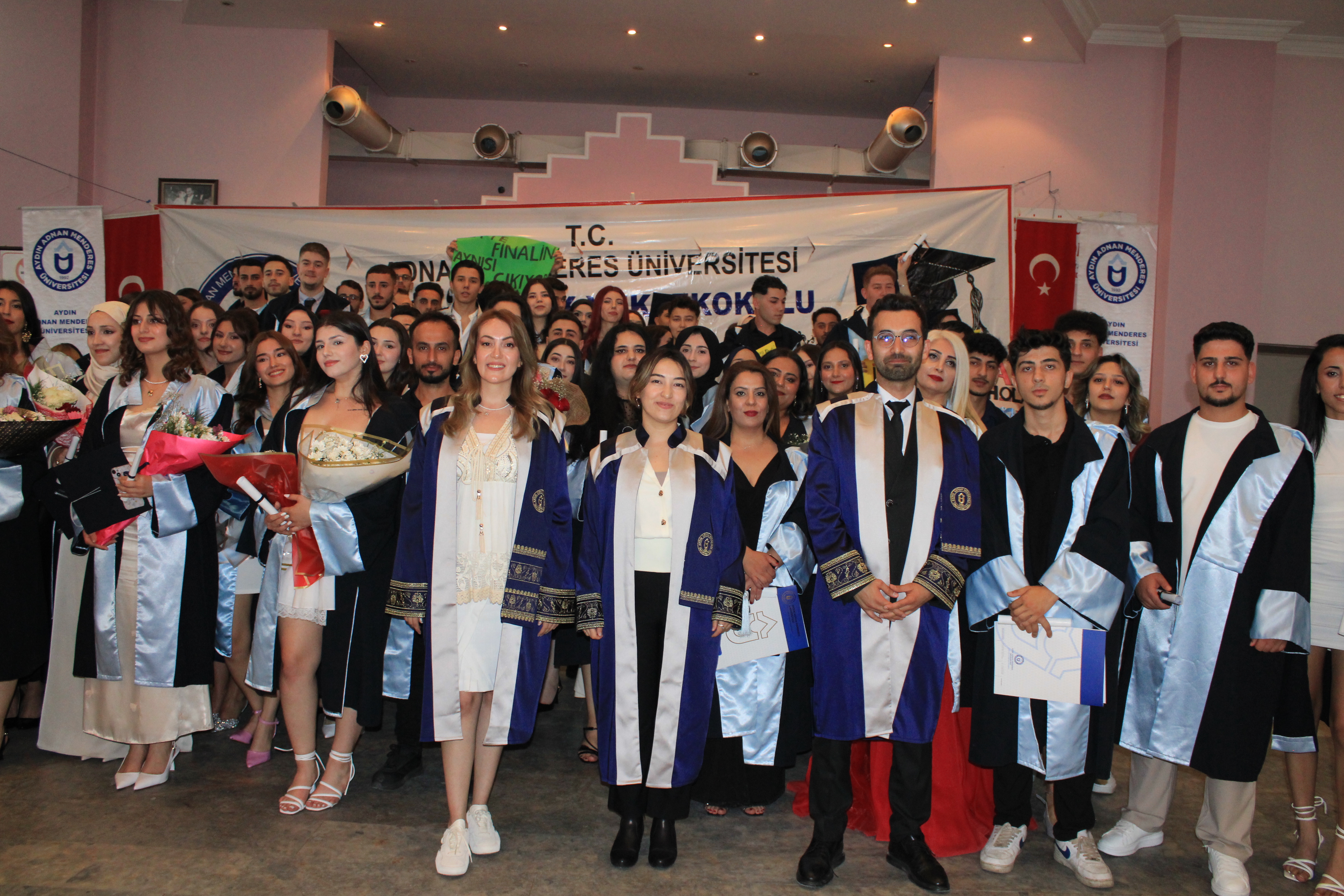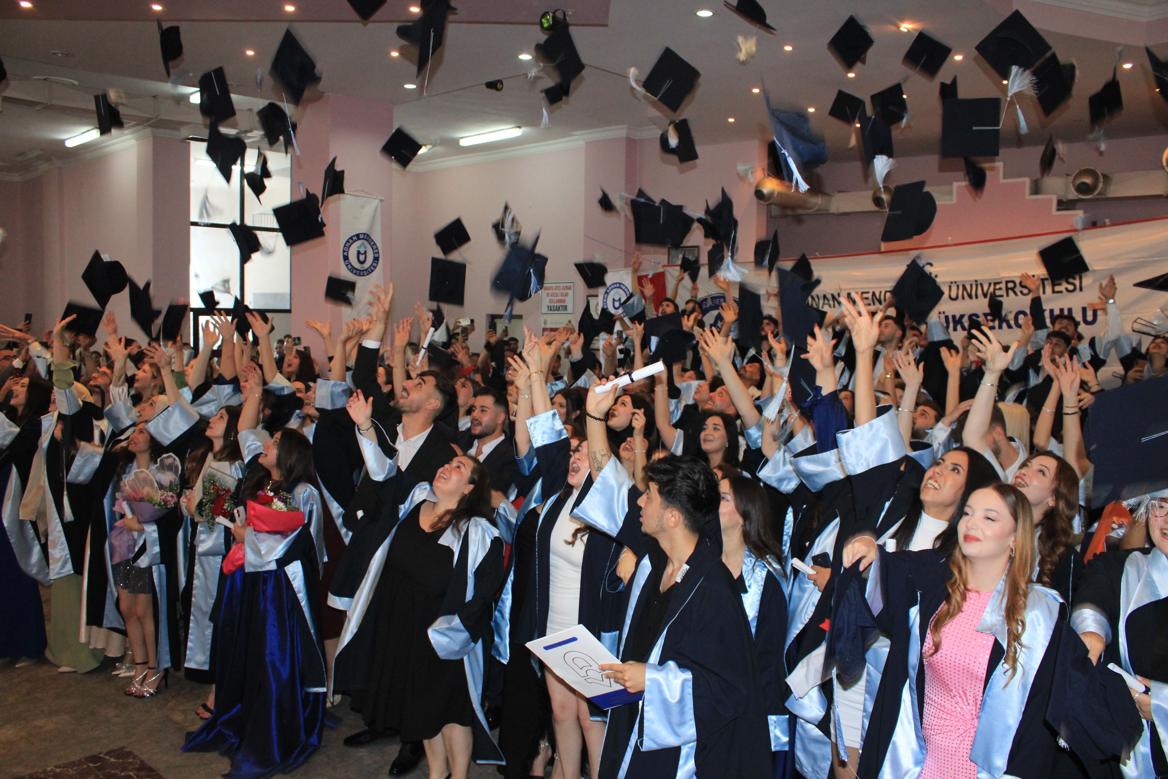 Tören, bölümlerinde ilk üçe giren öÄŸrencilere öÄŸretim üyeleri tarafından plaket verilmesi ve tüm mezun öÄŸrencilere baÅŸarı belgelerinin sunulması, geleneksel kep atma töreni ve toplu fotoÄŸraf çekimi ile devam etti.