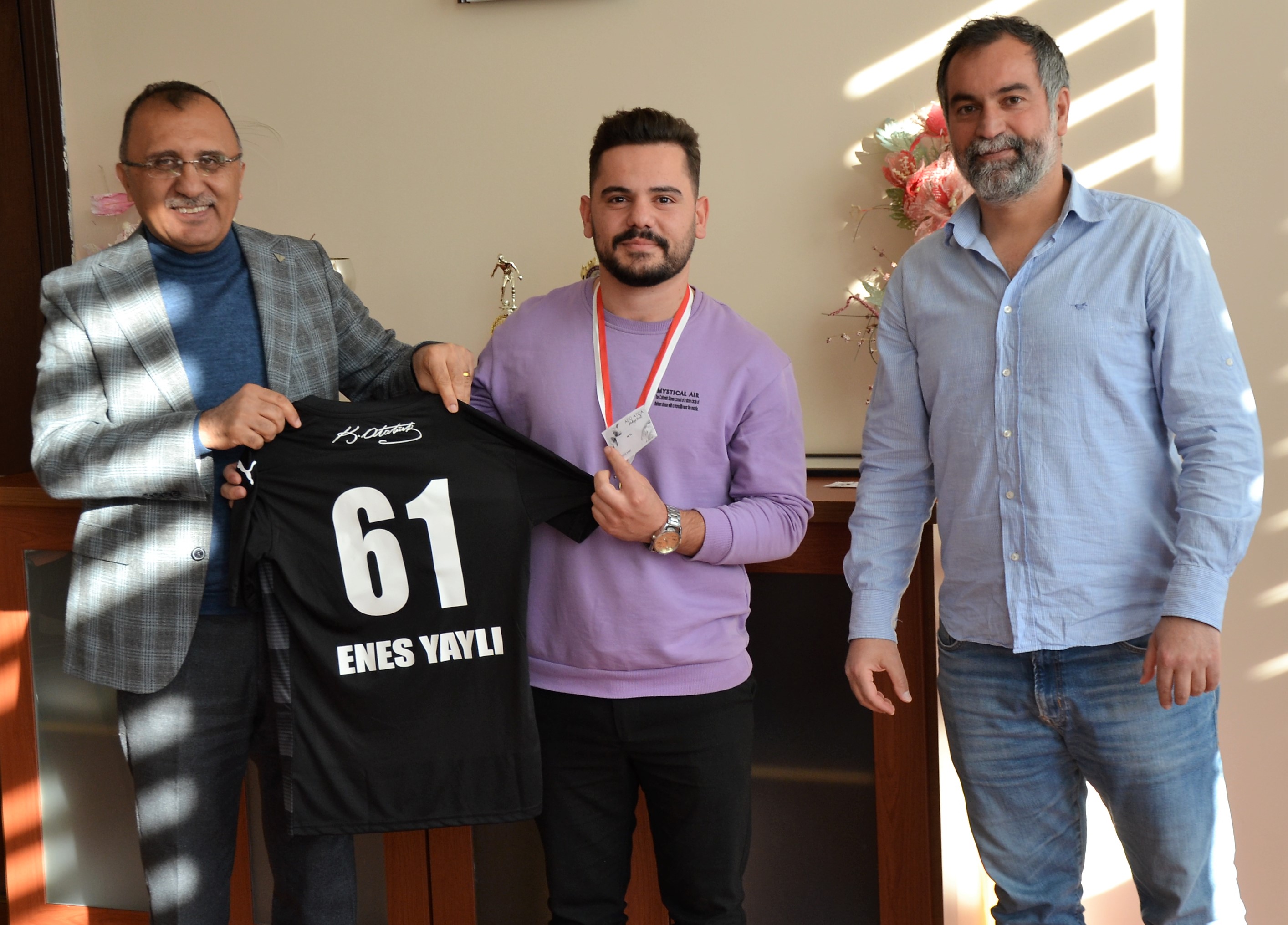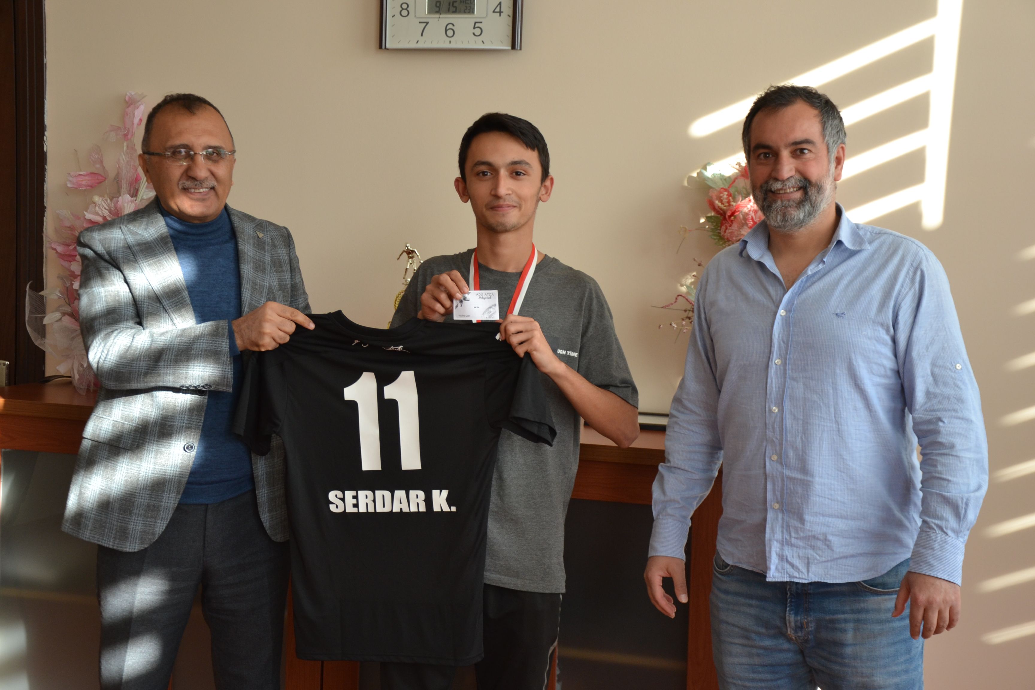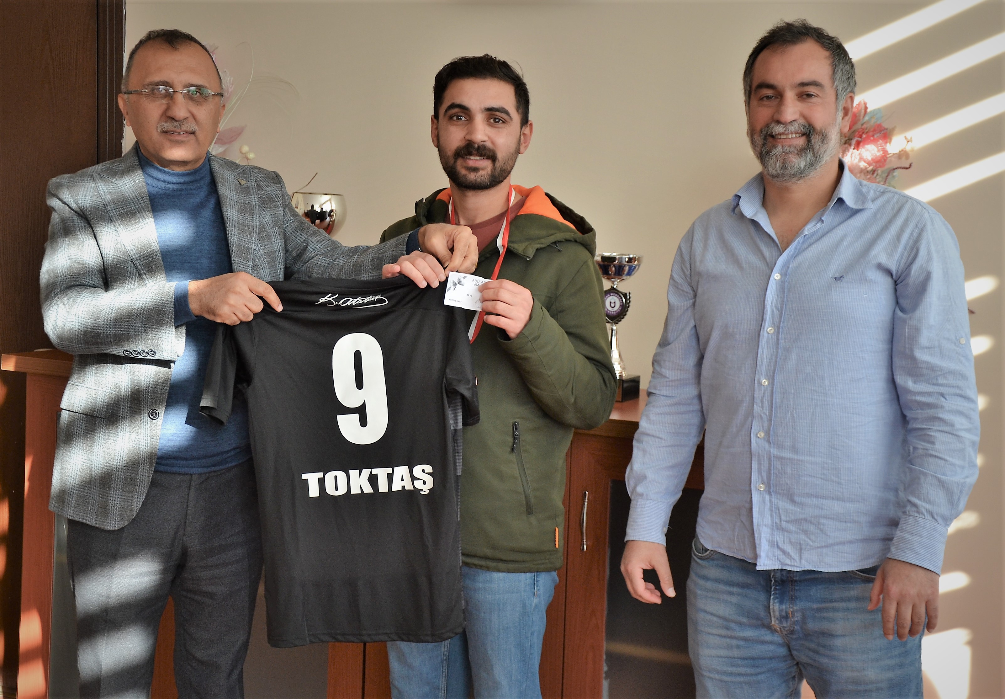 Yarışma sonunda ilk beşe giren ve kantin çeki, forma ve madalya gibi ödüllerin sahibi olan yarışmacıları Makamında ağırlayan Yüksekokulumuz Müdürü Prof.Dr.Serdar PAŞA, yarışmayı düzenleyen Öğr. Gör. Recep ÖZÇELİK’e ve tüm katılımcılara teşekkür ederek, ödüllerini verdi.