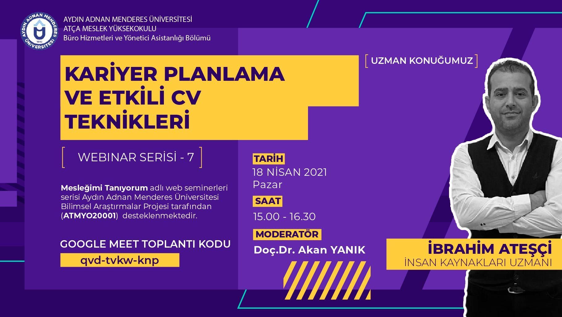 Mesleğimi Tanıyorum Webinar Serileri ile öğrencilerimizi sektörün uzman temsilcileriyle buluşturmayı amaçlamaktayız.