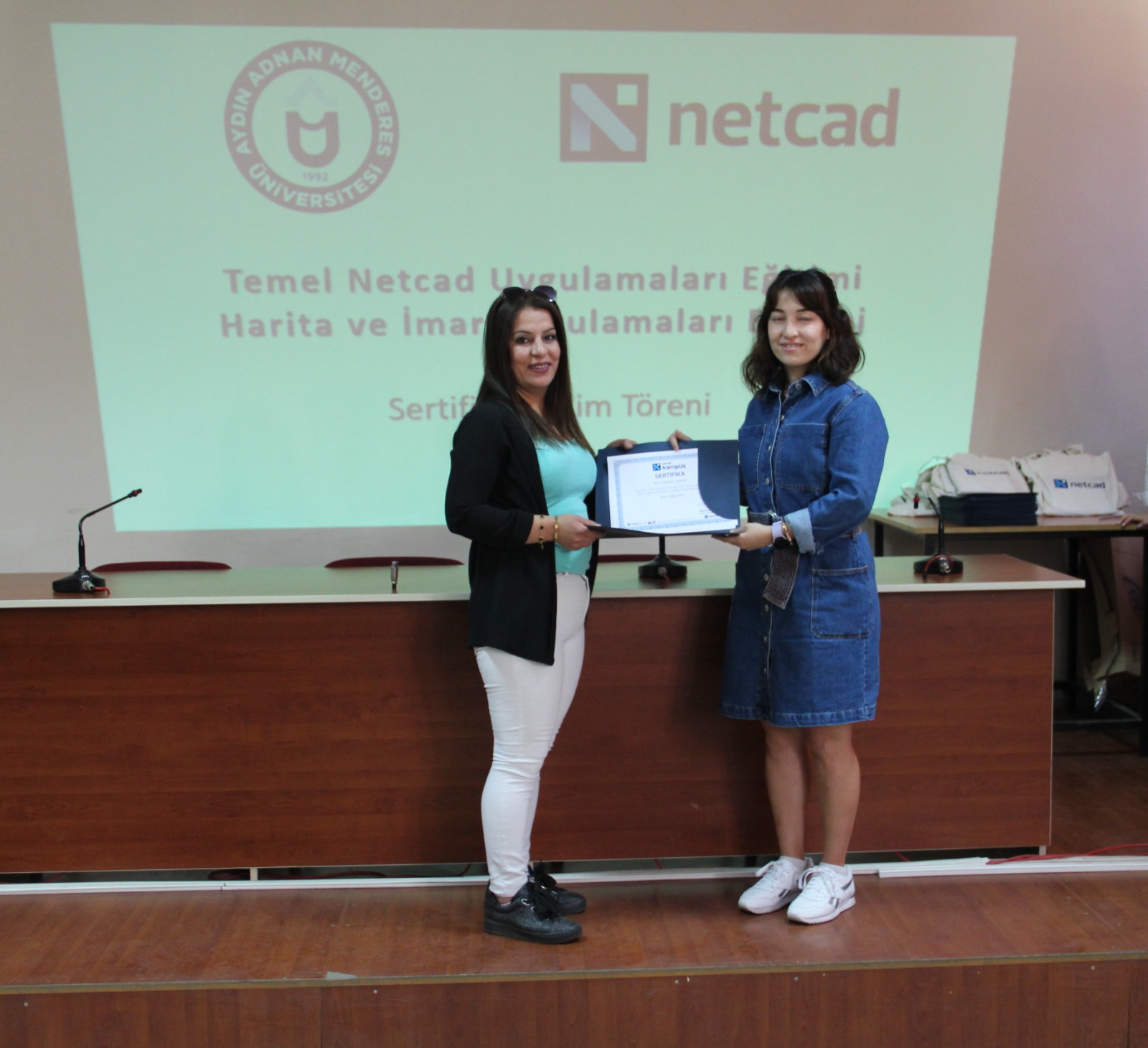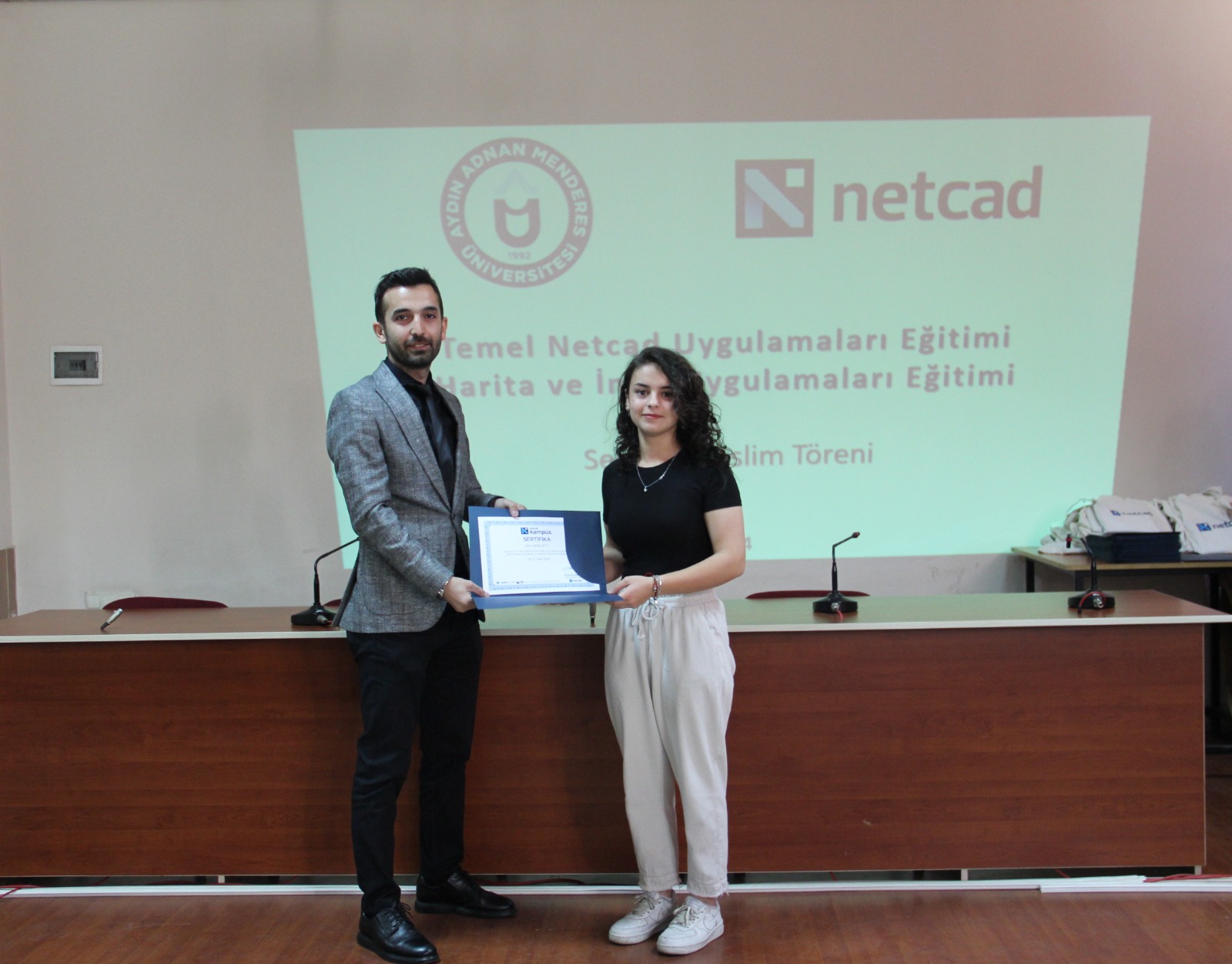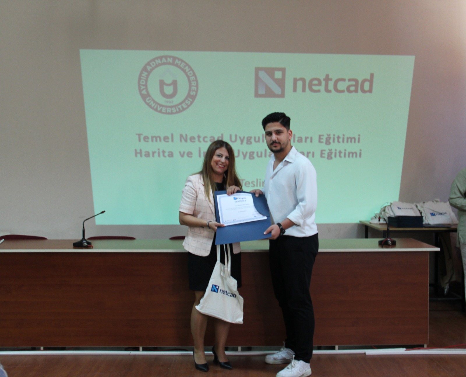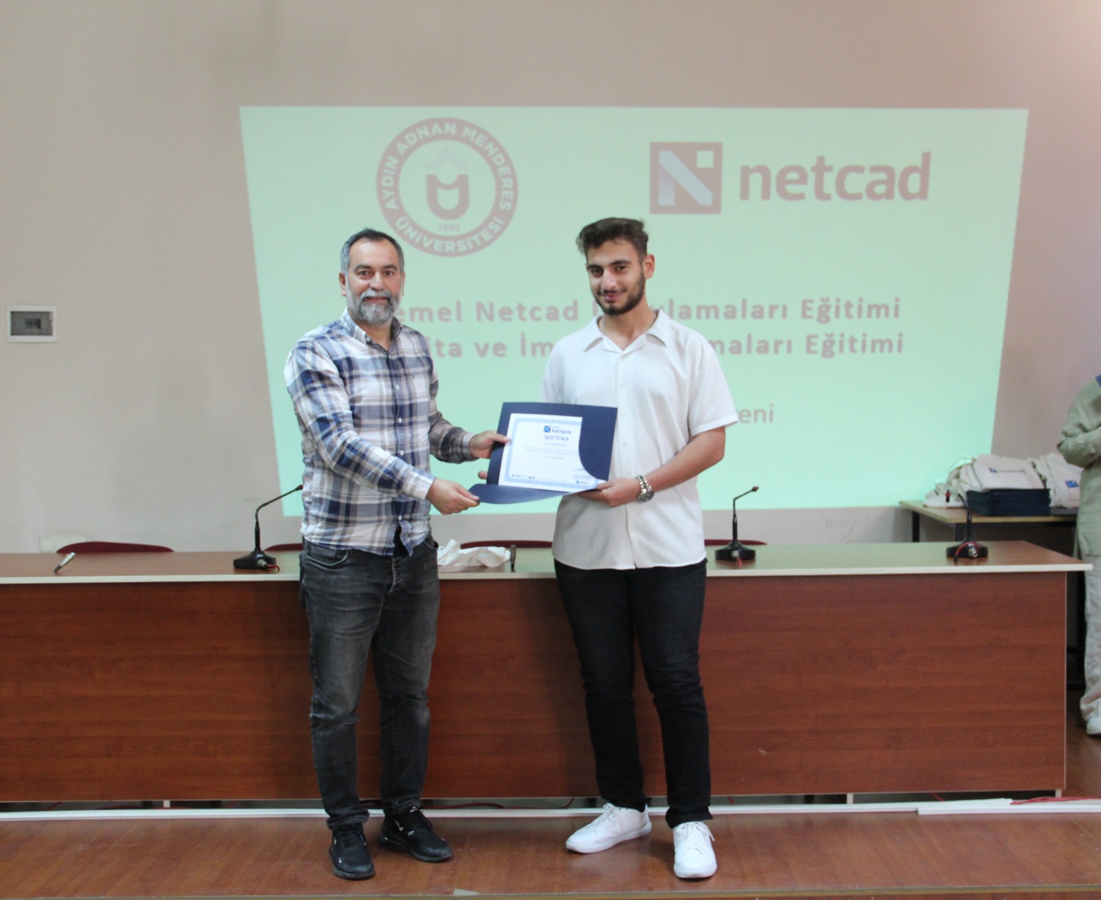 2021 yılında üniversitemiz Aydın Adnan Menderes Üniversitesi ve Netcad Yazılım A.Ş. arasında düzenlenen iş birliği protokolü kapsamında üniversitemize Netcad Akademi kurulmuştur. Bu protokol kapsamında öğrencilerimiz, Netcad tarafından düzenlenen eğitimlerde %90 hibe avantajından faydalanmaktadır. 20-21 Nisan ve 27-28 Nisan 2024 tarihlerinde toplam 36 saat olarak gerçekleştirilen eğitimi 71 öğrenci katılmıştır. Eğitim sonrasında öğrencilerimize meslek yüksekokulu müdürümüz Doç. Dr. Kemal Ramazan HAYKIRAN, meslek yüksekokulu müdür yardımcılarımız Öğr. Gör. Dilek SACIHAN ve Öğr. Gör. Recep ÖZÇELİK, bölüm başkanımız Öğr. Gör. Ahmet Doğukan YAZICI ve bölüm başkan yardımcımız Öğr. Gör. Derya ARABACI tarafından sertifika belgeleri takdim edilmiştir.