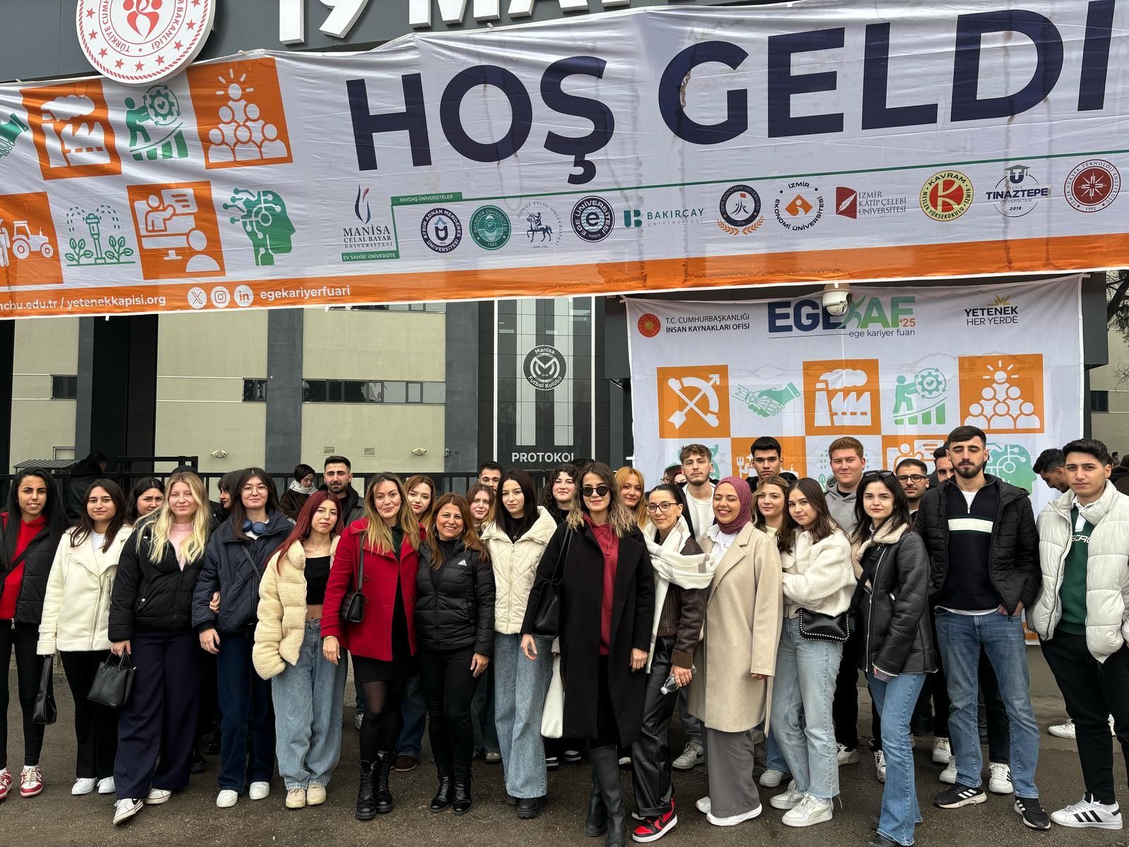 Atça Meslek Yüksekokulu öğrencilerimiz, Müdür Yardımcımız Öğr. Gör.Dilek SACIHAN ve hocamız Öğr. Gör. Ayşen AKDEMİR ile birlikte, üniversitemizin paydaşı olduğu EGEKAF’25’te yer aldı. Öğrencilerimiz, etkinlik kapsamında kariyer fırsatlarını keşfetme ve sektör temsilcileriyle bir araya gelerek mezuniyet sonrası iş hayatları ile ilgili fikir alışverişinde bulundu. Sınırsız ikramlar,bilgi yarışmaları,paneller,motivasyon söyleşileri ve uygulamalı similasyonlarla katılımcılar için hem öğretici hemde eğlenceli vakit geçirme imkanı sunuldu.