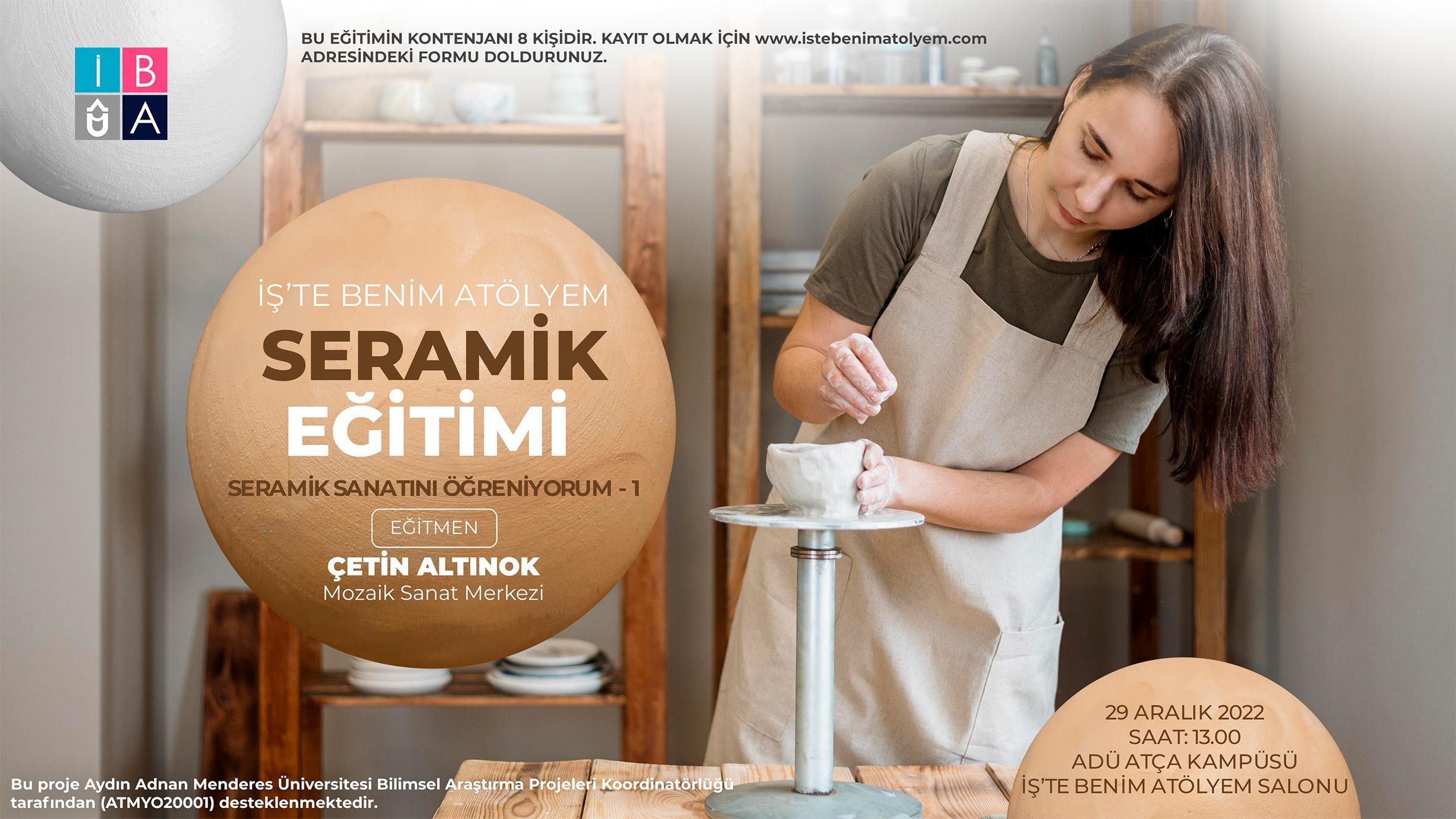 Adnan Menderes Üniversitesi Atça Meslek Yüksekokulu tarafından yürütülen İŞ'TE BENİM ATÖLYEM kapsamında öğrencilerimizin ders dışı zamanlarını en iyi şekilde değerlendirmek, bedensel, ruhsal, zihinsel, akademik, milli, manevi, sosyal, kültürel ve sportif yönden gelişimlerine katkı sağlamak amacıyla çeşitli atölye faaliyetleri düzenlenmektedir. Bu atölyelerden biri olan Seramik Sanatını Öğreniyorum Eğitimi toplam 5 seri olarak planlanmıştır. Eğitimlerin birinci serisi olan "Seramik Sanatını Öğreniyorum-1" kapsamında malzeme bilgisi ve kullanım teknikleri hakkında kısa bir bilgi verilmesinin ardından uygulama çalışmasına geçilecektir.