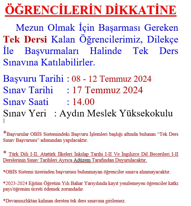 Tek Ders Sınavı