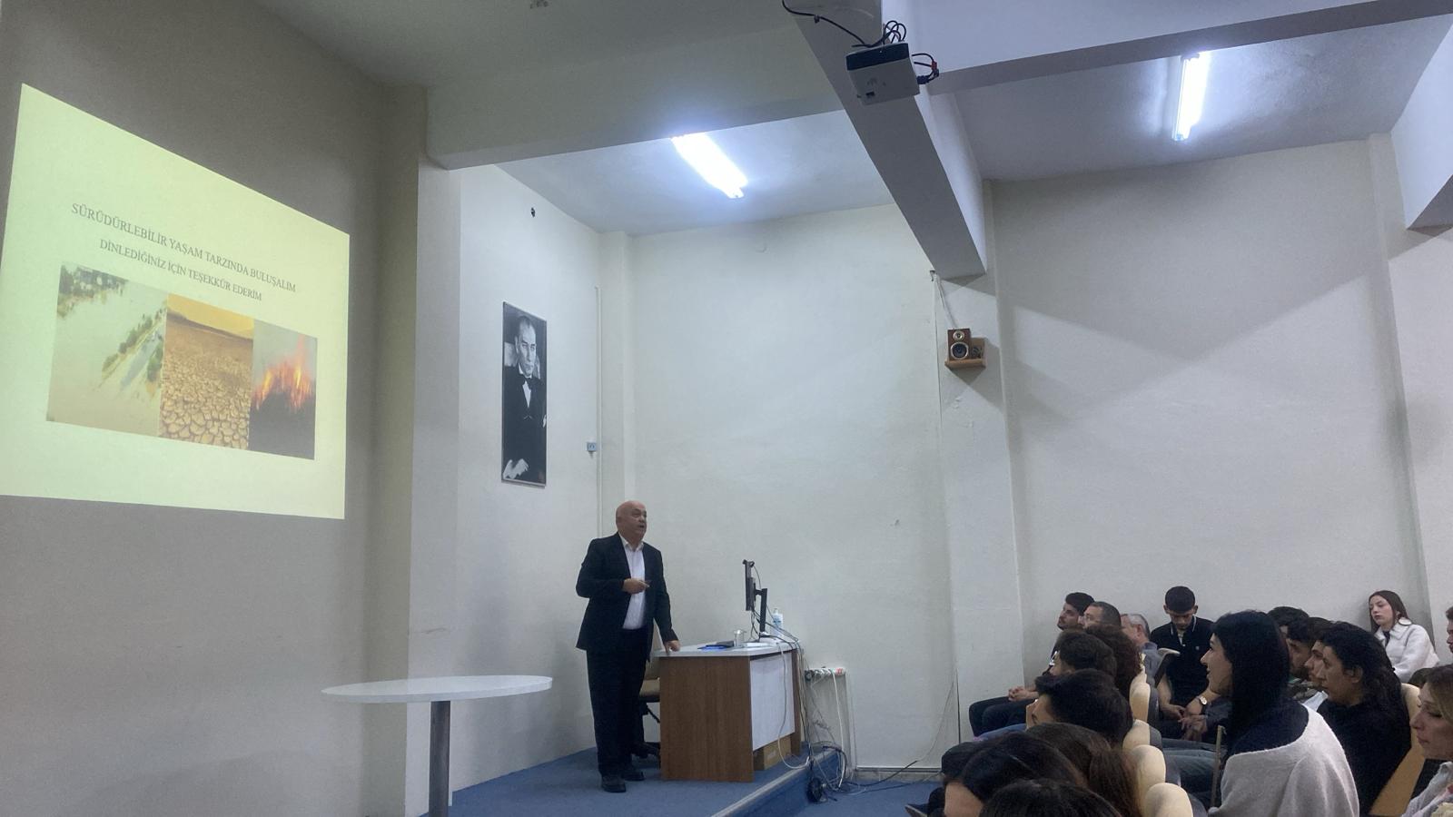 Üniversitemiz Aydın Meslek Yüksekokulu’nda (MYO), 6 Kasım 2025 tarihinde, Aydın Meslek Yüksekokulu Konferans Salonu’nda Yüksekokul İnşaat Bölümü İnşaat Teknolojisi Programı Dr. Öğretim Üyesi Korkmaz Yıldırım tarafından çevre bilincini artırmak ve iklim değişikliği konusunda farkındalık oluşturmak amacıyla seminer düzenlendi.