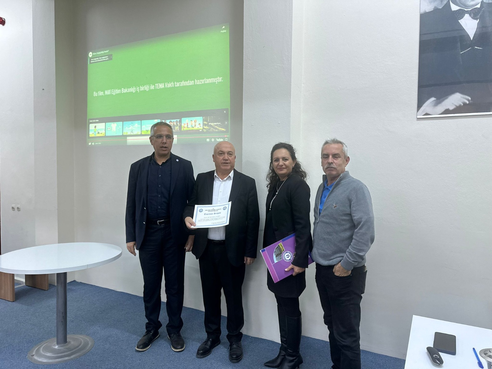 Üniversite öğrencilerinin çevreye duyarlı bireyler olarak yetişmelerine katkı sağlanmasını amaçlayan etkinlik, teşekkür belgesinin takdimi ve fotoğraf çekimi ile sona erdi.