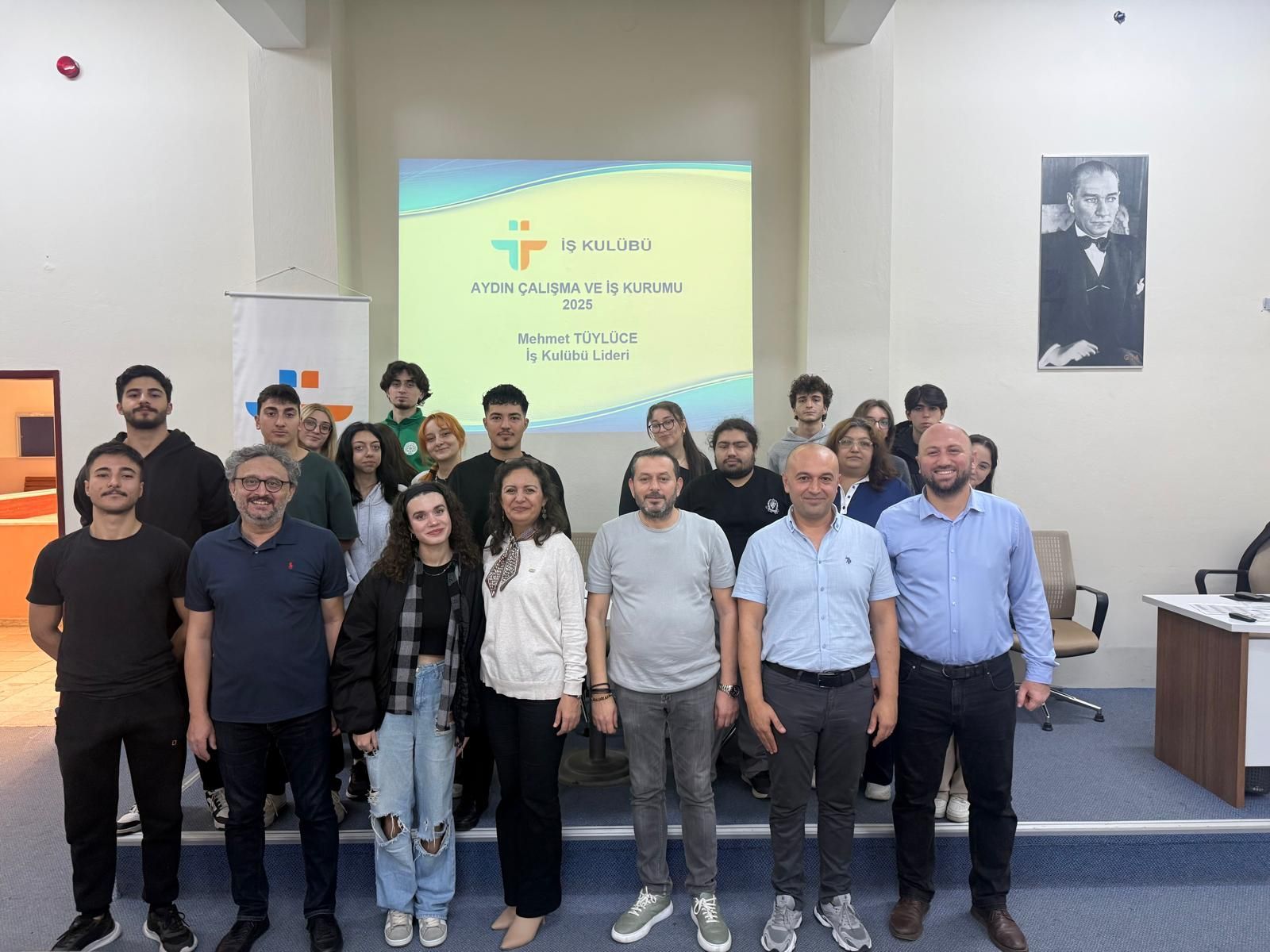 İŞKUR İş Kulübü lideri iş ve meslek danışmanı Mehmet Tüylüce, Necati Günay Öztürk, Ali Kamil Horzum tarafından hazırlanan eğitimler 27-10-2025 tarihinde Aydın MYO Konferans Salonunda Basım ve Yayım Teknolojileri Programı öğrencilerine yönelik verildi. Eğitime Basım ve Yayım Teknolojileri Programı Bölüm Başkanı Öğr. Gör. Hamdi Çetiner, bölüm hocaları Öğr. Gör. Aslıhan Topal, Öğr. Gör. Nebi Arslan ve öğrenciler katıldı. Eğitimde öğrencilere uygulamalı olarak kendini tanıma, işveren beklentileri, özgeçmiş hazırlama, mülakat teknikleri, iş arama ağı, telefon görüşmesi, beden dili başlıkları altında bilgiler aktarılmaktadır.