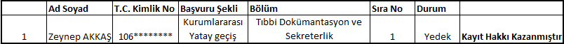 Kurumlararası Yatay Geçiş Yedek Listesi