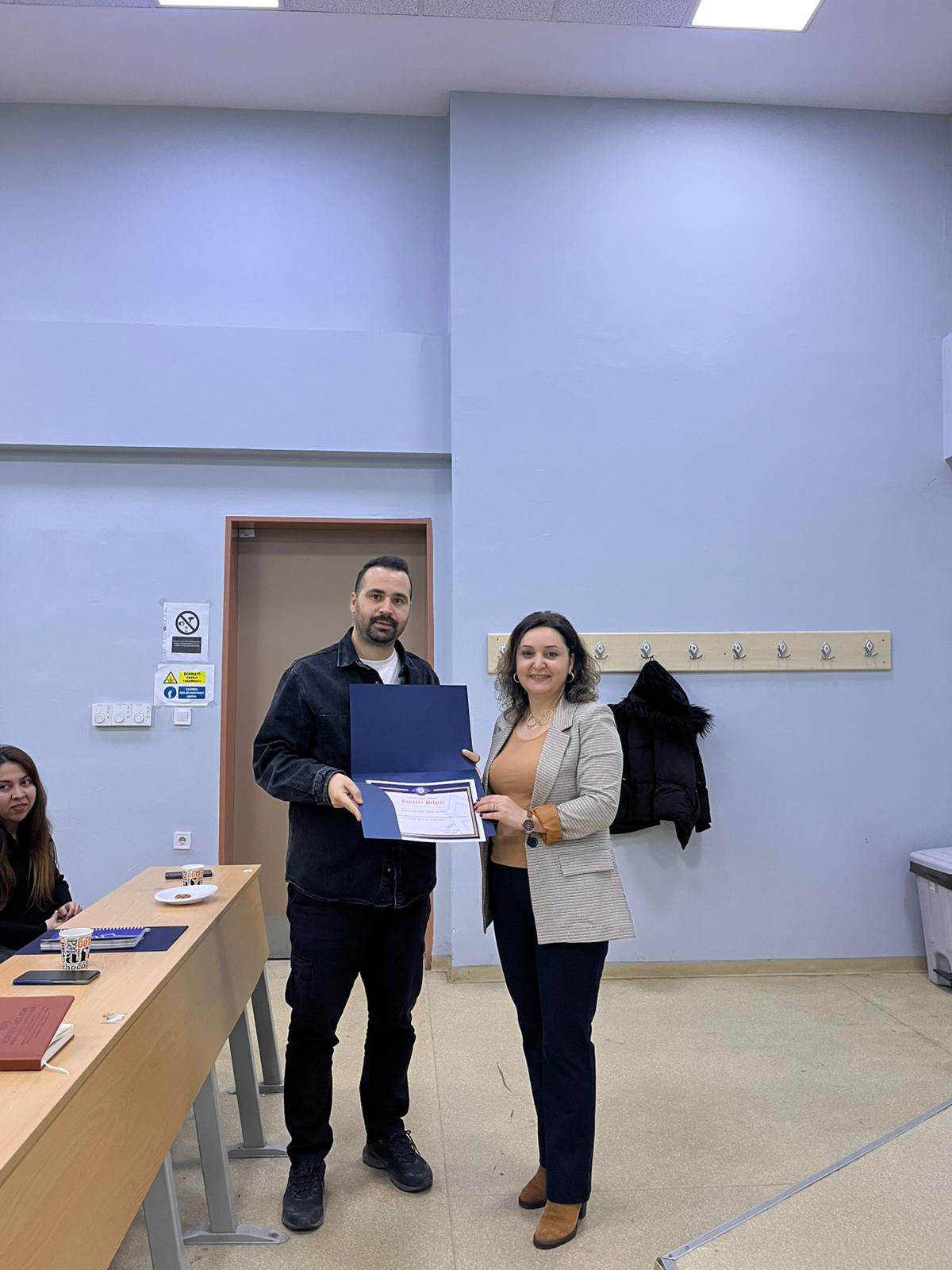 Ayrıca SCI indeksli Q1 kategorisinde yer alan bir dergide 2025 yılı içerisinde yayın gerçekleştiren Dr. Öğr. Üyesi Sevil Özcan’a ve akademik teşvik puanı en yüksek olan Öğr. Gör. Ebru Dereceli ile Dr. Öğr. Üyesi Gürkan Yılmaz’a teşekkür belgeleri verildi.