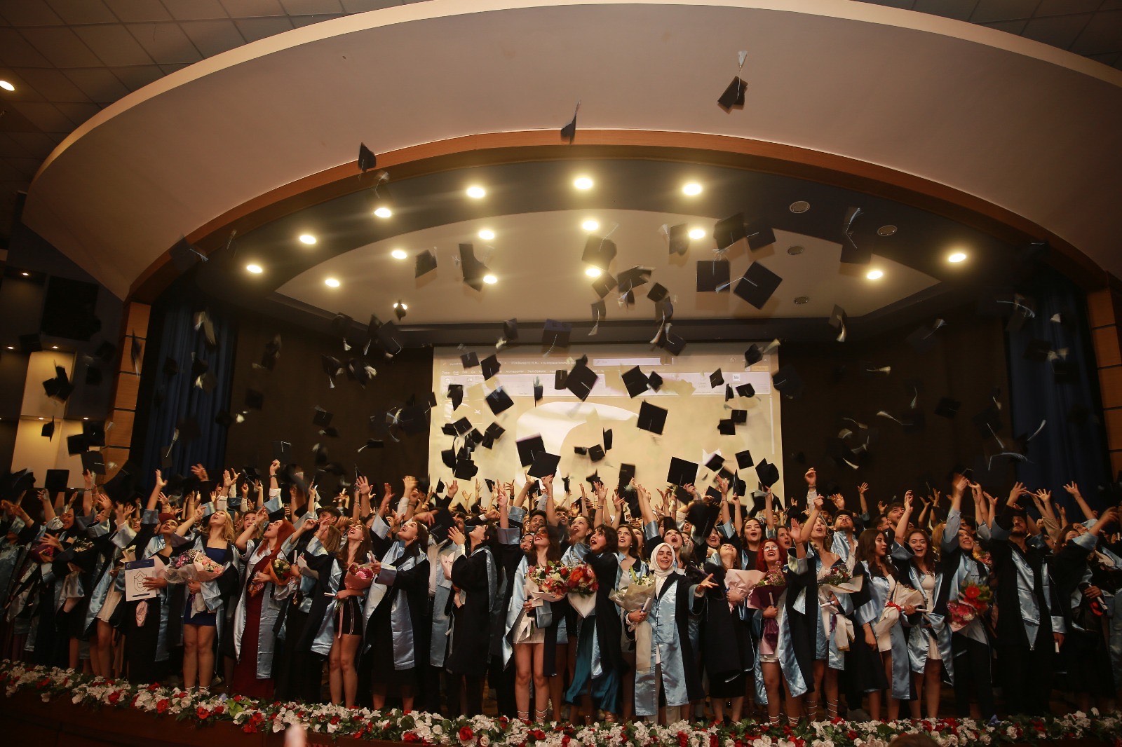 Törende öğrenciler, kep atarak mezuniyetlerini kutladılar. Hep birlikte hedeflerine doğru adım atmaya devam edecekler!