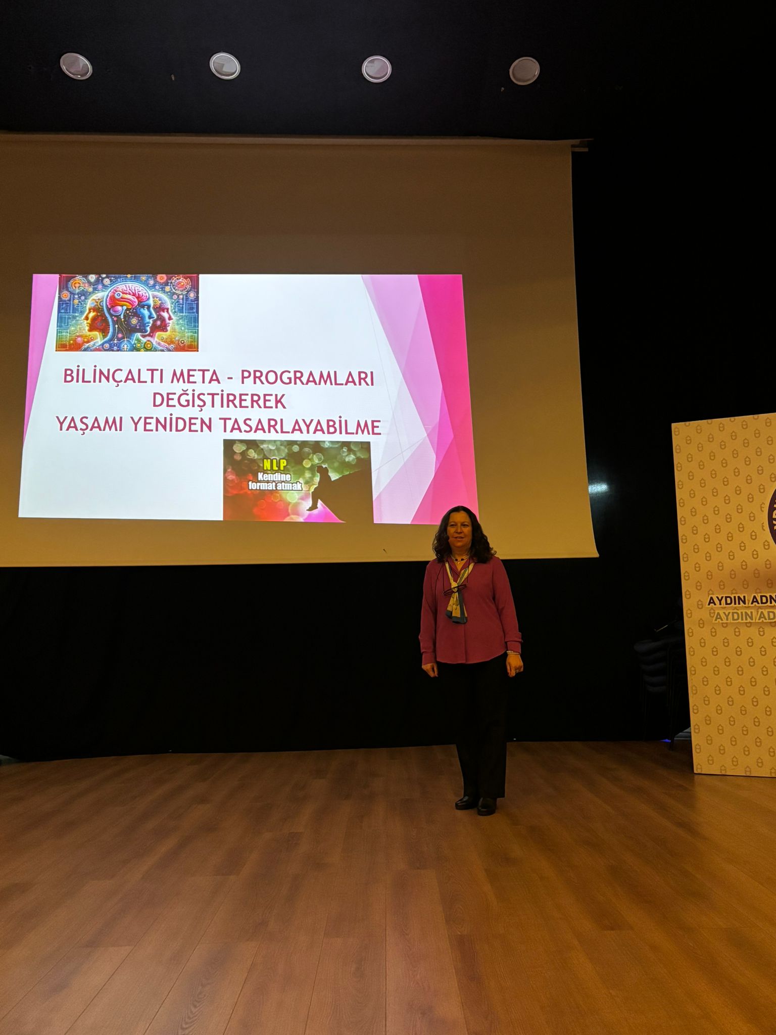 Aydın Adnan Menderes Üniversitesi Aydın Sağlık Hizmetleri Meslek Yüksekokulu İlk ve Acil Yardım Programı tarafından düzenlenen “Bilinçaltı Meta Programları Değiştirerek Yaşamı Yeniden Tasarlayabilme” başlıklı etkinlik, 20 Nisan 2026 tarihinde saat 14.00 da Atatürk Kongre Merkezi İsa Bey Salonunda, bölüm öğretim elemanı Öğretim Görevlisi Hayriye Çakmak tarafından gerçekleştirildi.