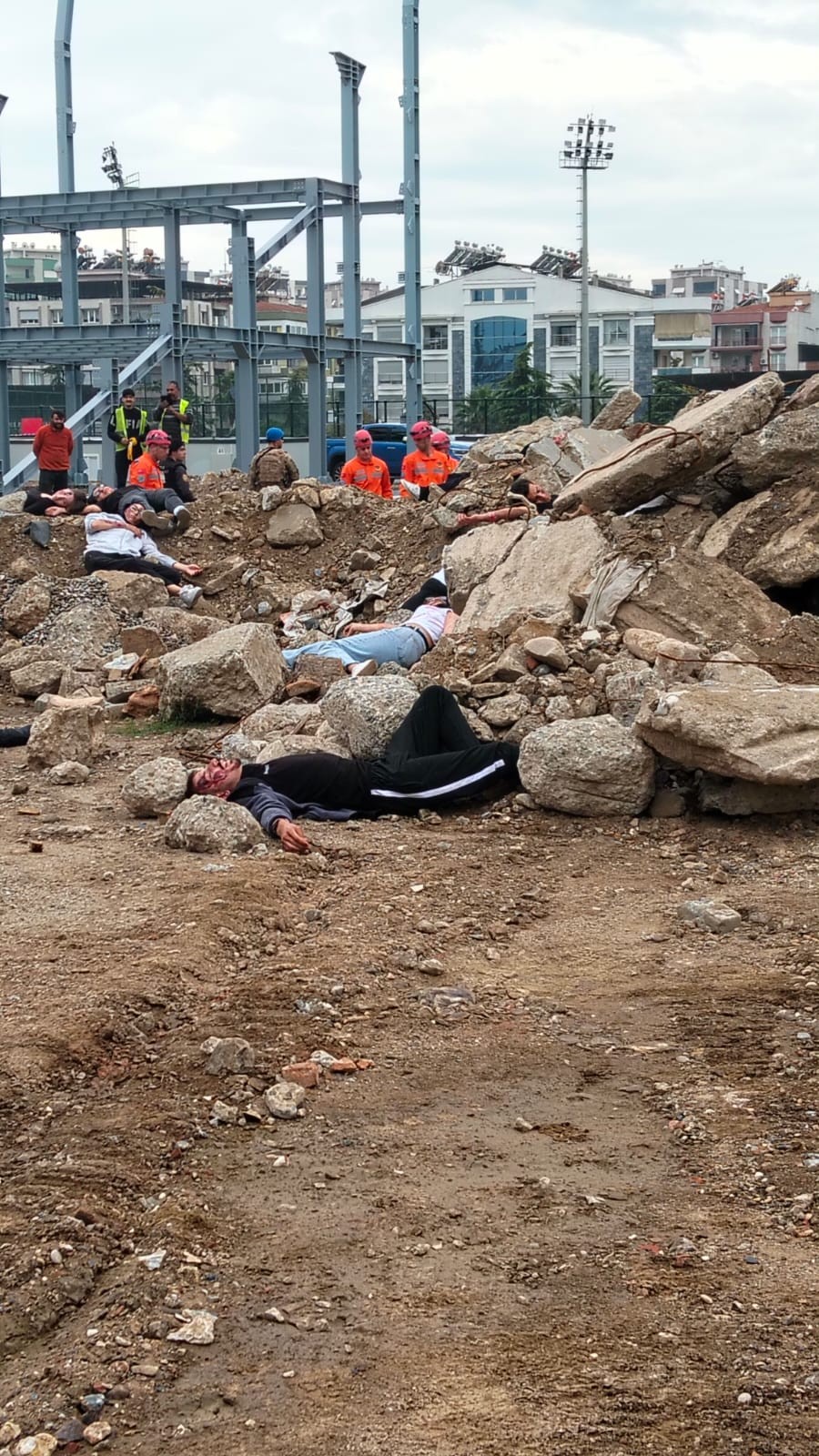 Aydın Adnan Menderes Stadyumu’nda, İl SaÄŸlık MüdürlüÄŸü koordinasyonunda 21 Ekim Salı günü “Tribün Çökmesine BaÄŸlı Toplu Yaralanma” konulu geniÅŸ kapsamlı bir tatbikat gerçekleÅŸtirildi. Gerçek bir afet senaryosu temel alınarak yapılan tatbikatta, acil durum ekiplerinin olay yerine hızlı ve koordineli ÅŸekilde müdahale etmesi, yaralıların tahliyesi ve ilk yardım uygulamalarının etkin biçimde yürütülmesi hedeflendi.