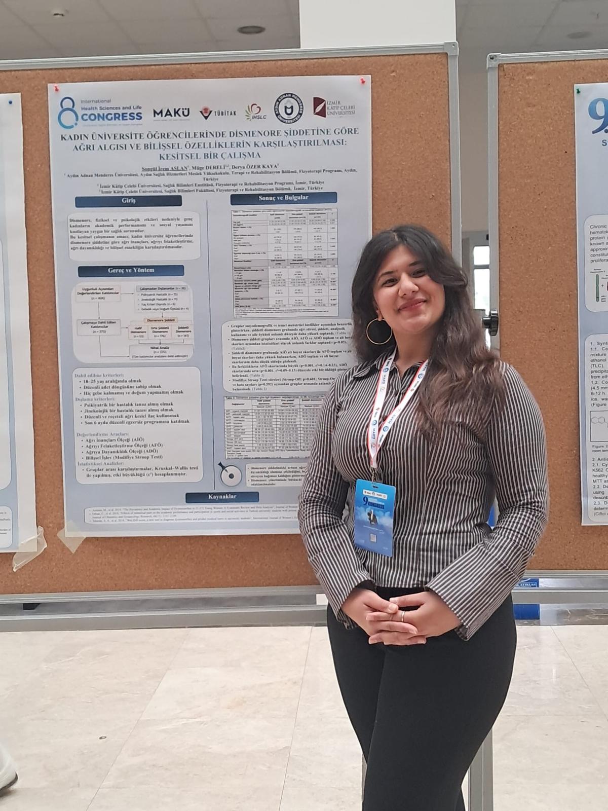 ÖÄŸrencimiz, ÖÄŸr. Gör. Müge Dereli danışmanlığında gerçekleÅŸtirilen ve TÜBİTAK 2209-A Üniversite ÖÄŸrencileri AraÅŸtırma Projeleri Destekleme Programı kapsamında desteklenen “Kadın Üniversite ÖÄŸrencilerinde Dismenore Åžiddetine Göre AÄŸrı Algısı ve BiliÅŸsel Özelliklerin KarşılaÅŸtırılması: Kesitsel Bir AraÅŸtırma” adlı çalışmasını kongrede poster bildiri olarak sundu.