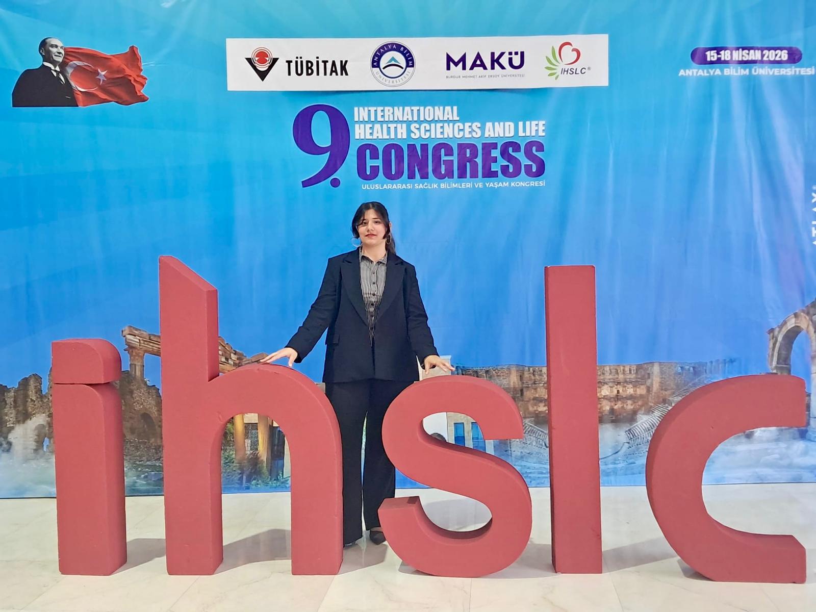Aydın Adnan Menderes Üniversitesi SaÄŸlık Hizmetleri Meslek Yüksekokulu Fizyoterapi Programı öÄŸrencilerinden Songül İrem Aslan, 15–18 Nisan 2026 tarihleri arasında Antalya Bilim Üniversitesi ev sahipliÄŸinde düzenlenen 9. Uluslararası SaÄŸlık Bilimleri ve YaÅŸam Kongresi (IHSLC 2026)’nde okulumuzu temsil etti.