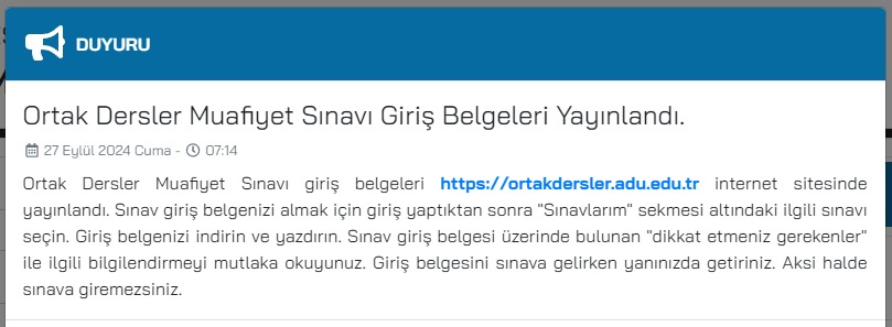 Ortak Dersler Muafiyet Sınavı Giriş Belgeleri Yayınlandı.