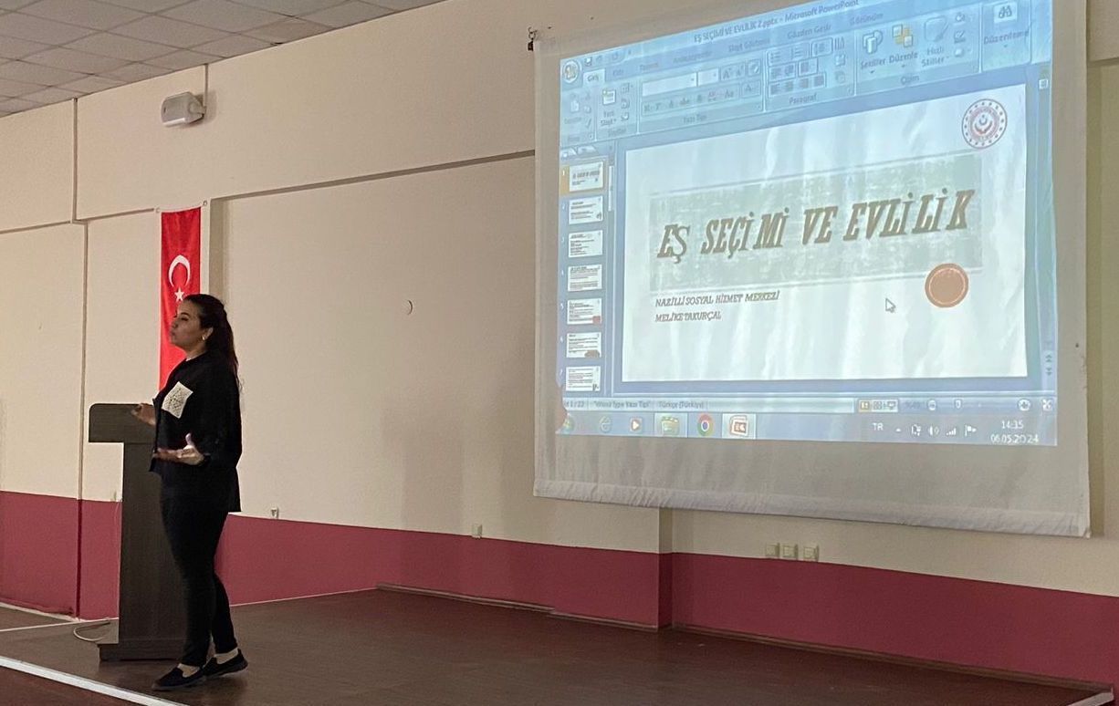 BozdoÄŸan MYO’ nun konferans salonunda yaklaşık 50 öÄŸrencinin katılımıyla gerçekleÅŸtirilen etkinlikte konuÅŸma yapan Ünlü, bilinçlendirme ve hazırlık, iliÅŸki becerilerinin geliÅŸtirilmesi, rol ve sorumlulukların anlaşılması, finansal planlama ve yönetim, evlilikteki risklerin ve zorlukların farkındalığı konularında bilgi verdi. Seminerde Ünlü: “EÅŸ seçimi, hayatınızı büyük ölçüde etkileyecek önemli bir karardır. DoÄŸru eÅŸi seçme mutlu bir iliÅŸkinin temelini oluÅŸturur” ifadesini kullandı.