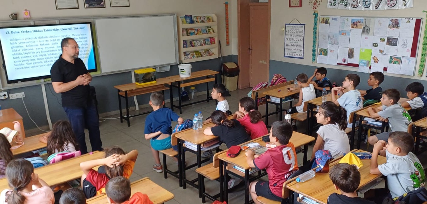 Bozdoğan Meslek Yüksekokulu (MYO) Veterinerlik Bölümü öğretim üyelerinden Dr. Öğr. Üyesi Okan Ertosluk, dış paydaş etkinlikleri kapsamında 17 Haziran 2025 tarihinde Bozdoğan Fatih İlkokulu’nda düzenlenen “Tecrübe Paylaşımı Söyleşileri”nde 3. ve 4. sınıf öğrencilerine yönelik “Balık Yiyorum, Sağlıklı Büyüyorum” başlıklı bir söyleşi gerçekleştirdi.