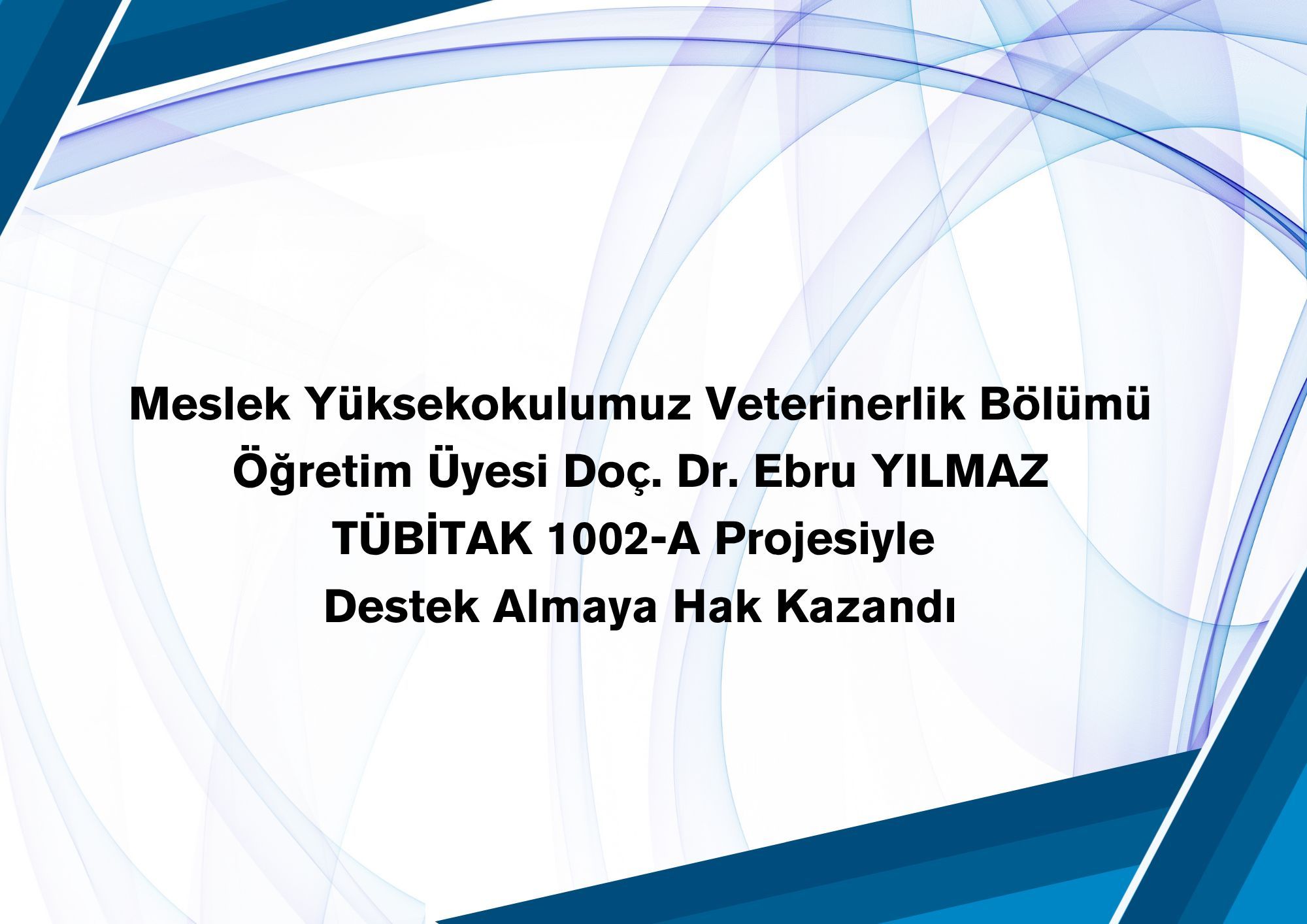 BozdoÄŸan Meslek Yüksekokulu Veterinerlik Bölümü ÖÄŸretim Üyesi Doç. Dr. Ebru YILMAZ’ın yürütücülüÄŸünü üstlendiÄŸi bilimsel araÅŸtırma projesi, TÜBİTAK 1002-A Hızlı Destek Programı kapsamında desteklenmeye hak kazandı.