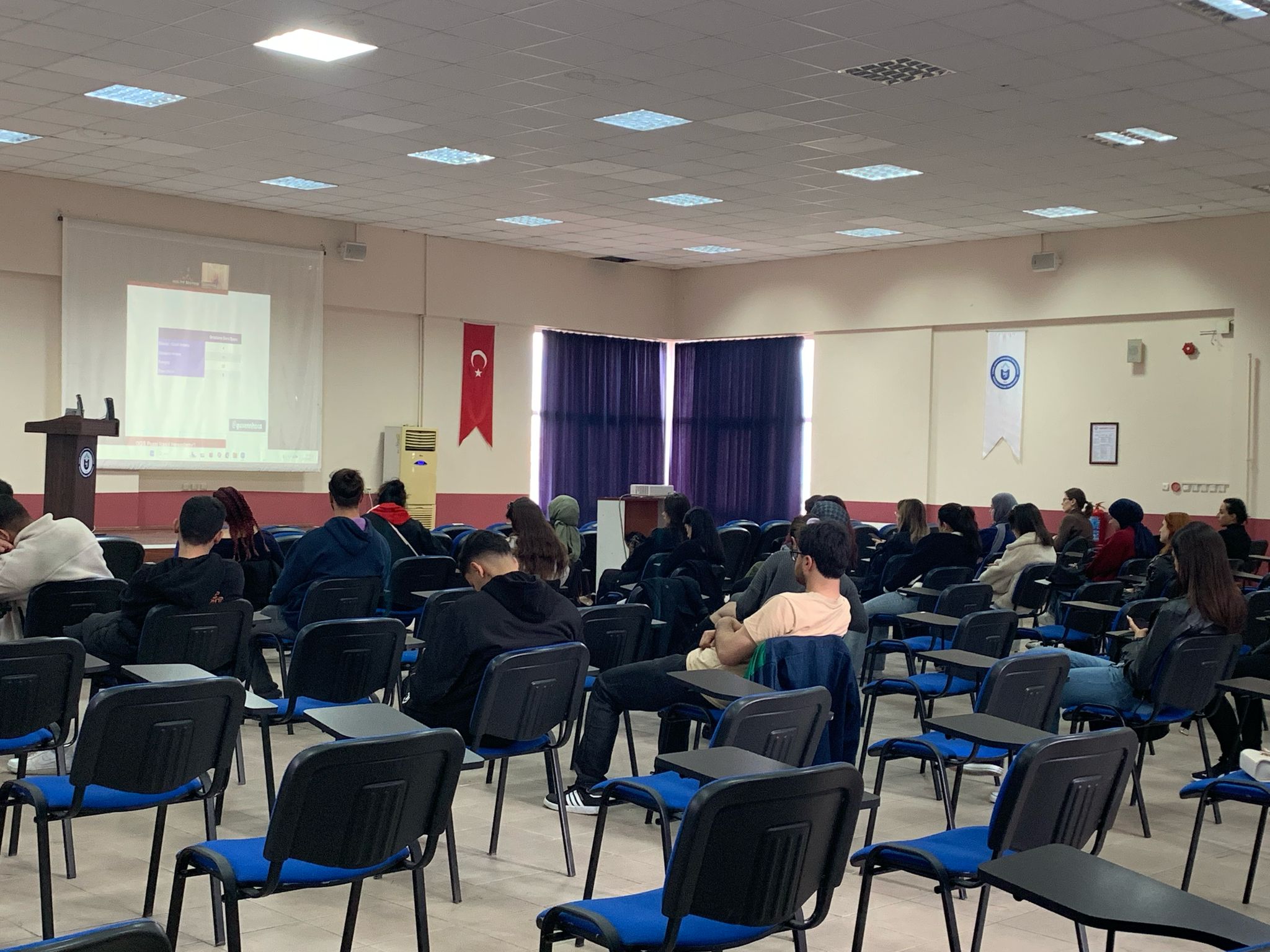 Bozdoğan Meslek Yüksekokulunda (MYO) hibrit olarak düzenlenen Dikey Geçiş Sınavı (DGS) semineri 19 Mart 2025 tarihinde öğrencilerin katılımıyla gerçekleştirildi. Konferans salonunda yüz yüze ve çevrim içi olarak yapılan seminerde, Lider Okulları kurucu ortaklarından ve Hoca Kafası Yayınları eğitmeni Güven Göllüoğlu, öğrencilere DGS süreci hakkında kapsamlı bilgiler sundu.