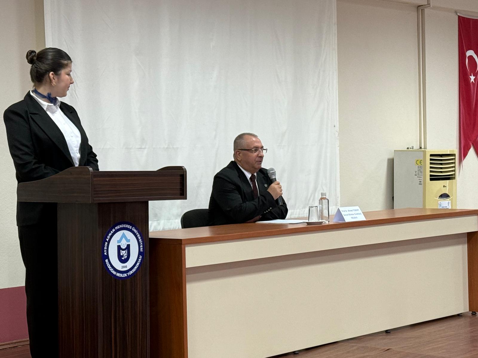 Bozdoğan Meslek Yüksekokulu (MYO), tarihi şuur ve millî birlik temasını güçlendirmek amacıyla 16 Aralık 2025 tarihinde Aydın Adnan Menderes Üniversitesi Sosyal Bilimler Enstitüsü Müdürü Prof. Dr. Ahmet TOKSOY’un sunumuyla “Dünden Yarına: Millî Mücadele Ruhunun Genç Kuşaklara Aktarılması” başlıklı bir konferans düzenledi.
