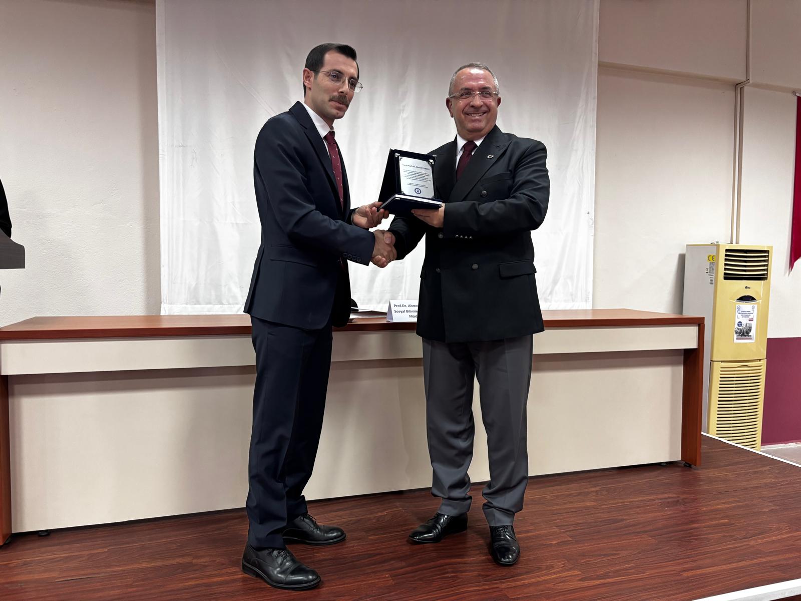 Sunumun ardından, Prof. Dr. TOKSOY’a değerli katkılarından dolayı Bozdoğan Kaymakamı Yunus Emre POLAT tarafından bir şükran plaketi takdim edildi.