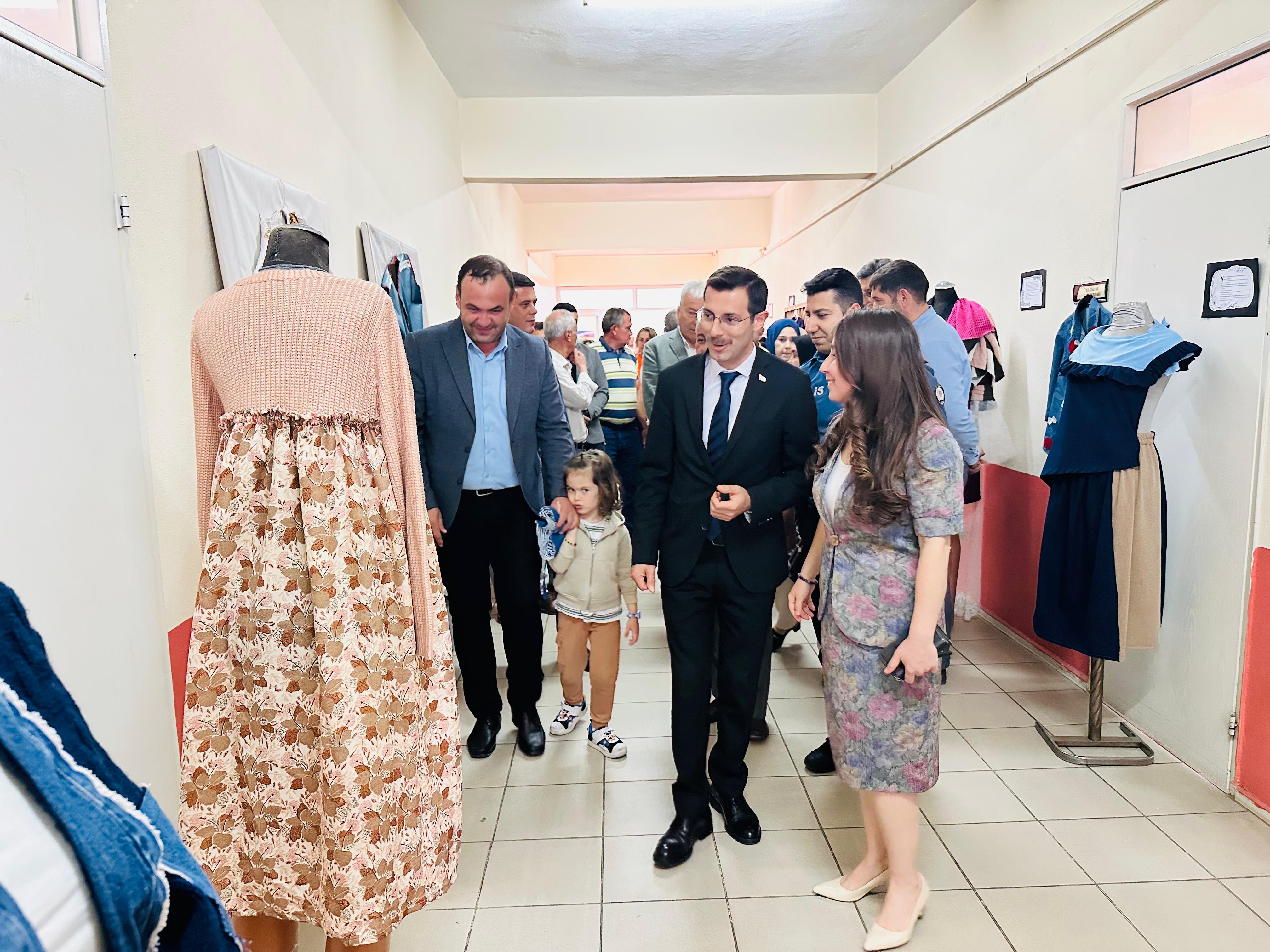 Giysi sergisinin açılışında konuşma yapan Bozdoğan Kaymakamı Yunus Emre Polat, sosyal sorumluluk bilinciyle yürütülen bu projeyi gönülden desteklediğini belirterek, sadece giysilerin değil, toplumsal değerlerin de yeniden hayat bulduğunu vurguladı. Sürdürülebilirliğin çevresel olduğu kadar toplumsal bir görev olduğuna dikkat çeken Polat, projede emeği geçen eğitimcilere, kursiyerlere ve öğrencilere teşekkür etti.