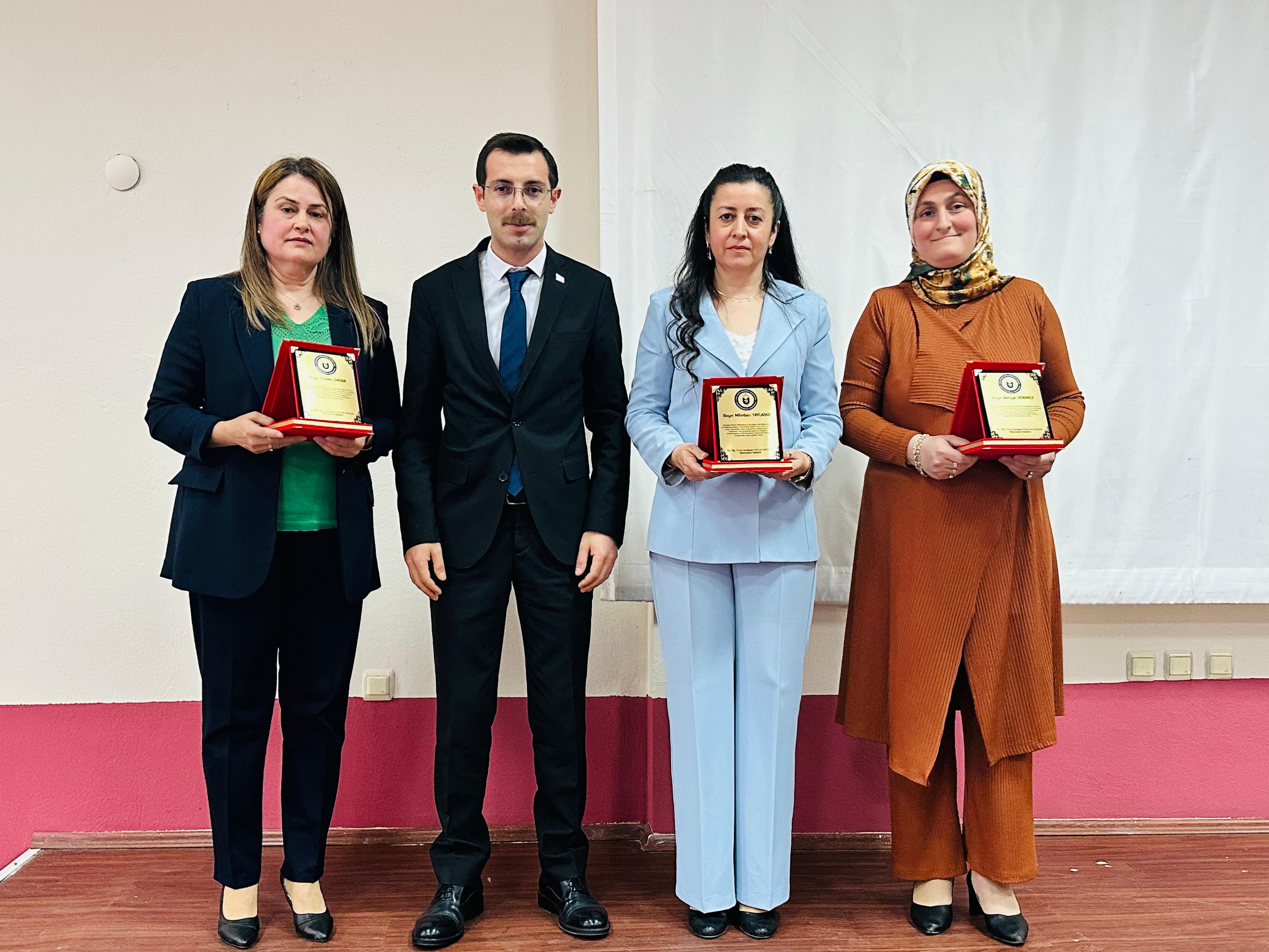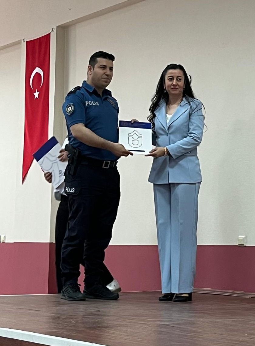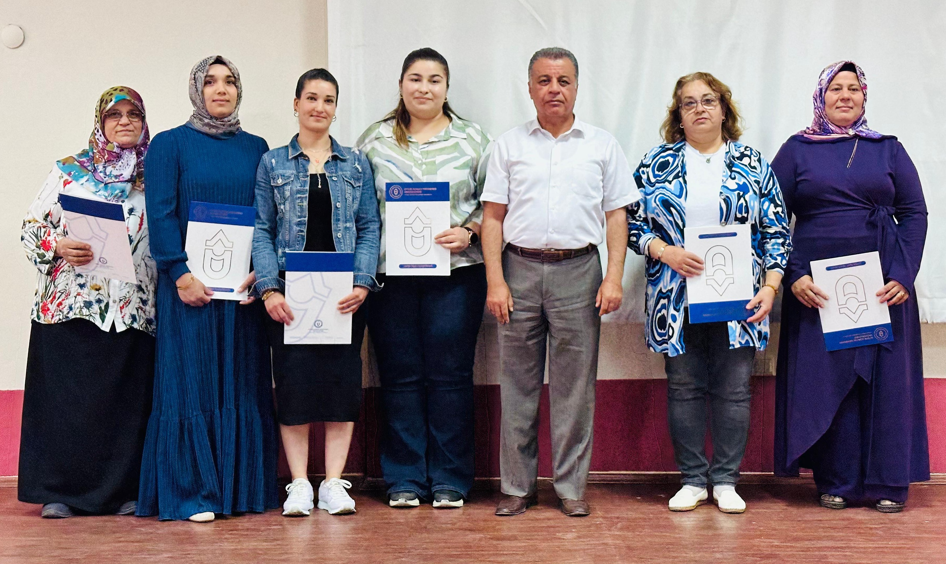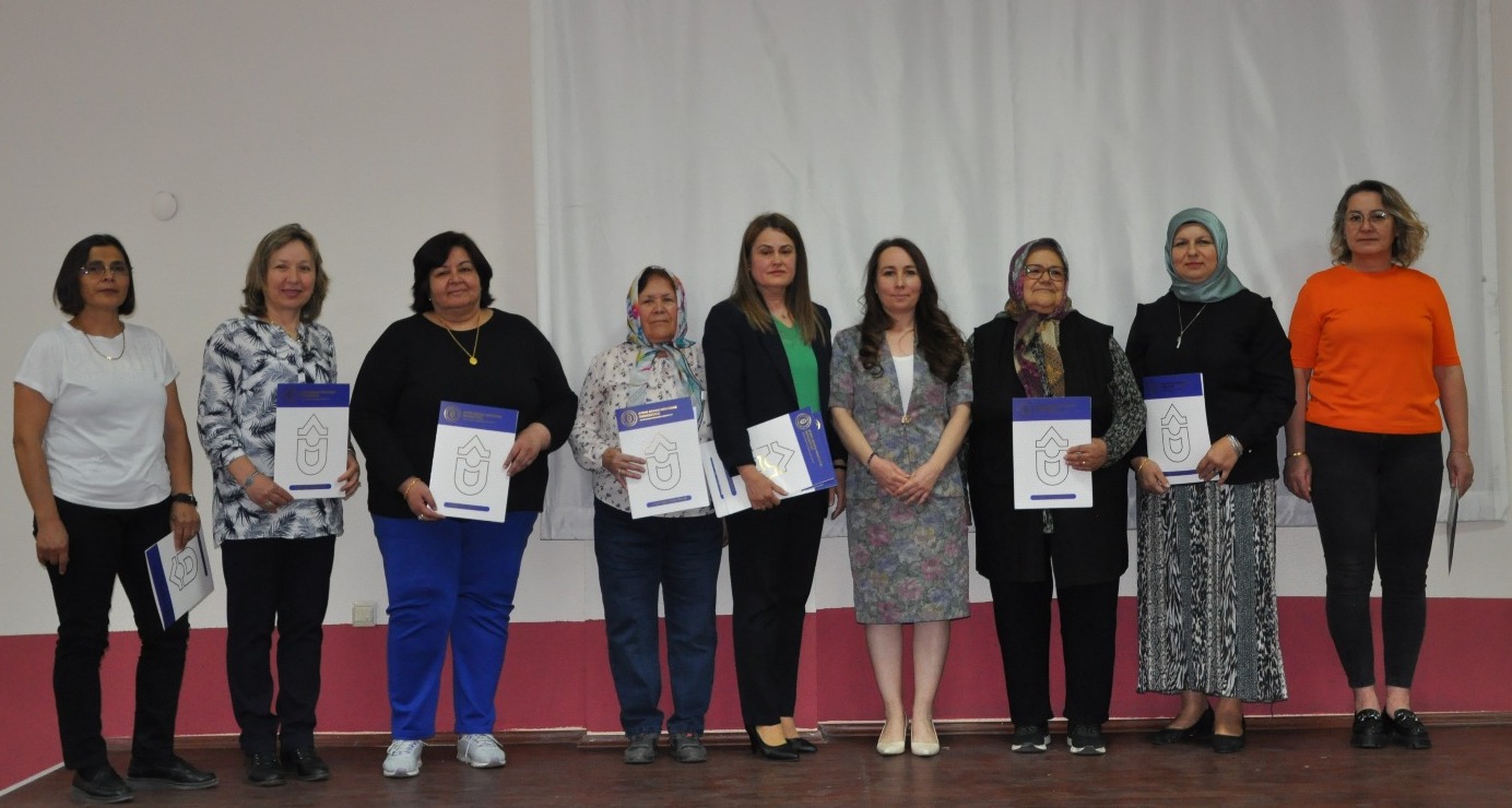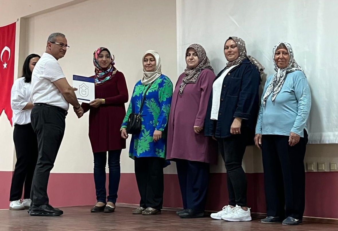 Konuşmaların ardından, projeye verdikleri katkılardan dolayı Yazıkent Halk Eğitim Merkezi Giyim Öğretmeni Mihriban Yaylagül ve Bozdoğan Halk Eğitim Merkezi Giyim Öğretmeni Behiye Dönmez ile Nakış Öğretmeni Gülden Dayan’a, Bozdoğan Kaymakamı Yunus Emre Polat tarafından teşekkür plaketi takdim edildi.
