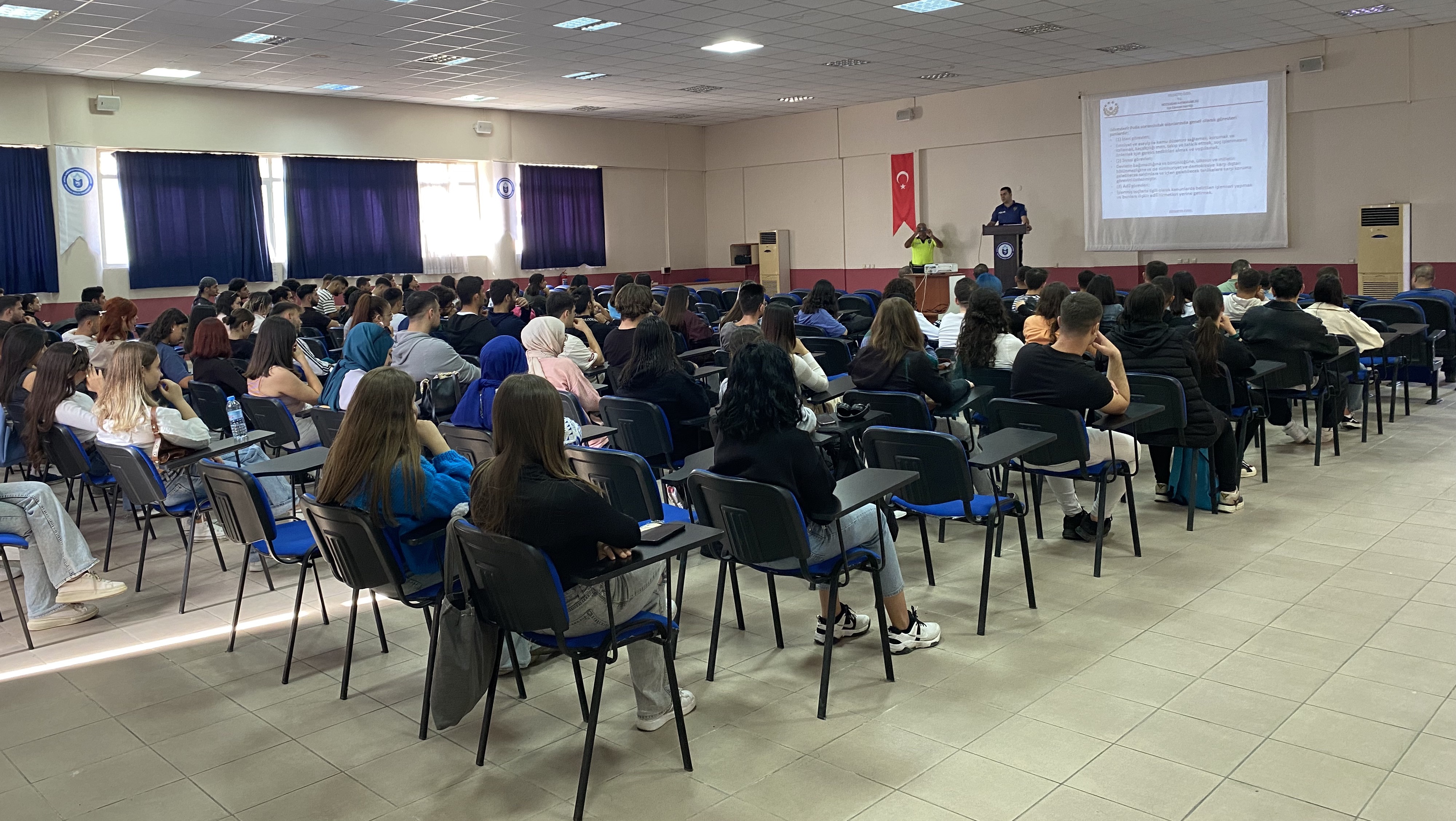 Üniversitemiz Bozdoğan Meslek Yüksekokulu (MYO) öğrencilerine, polislik mesleği, polislerin görevleri ile yetkileri ve Kadın Acil Destek Uygulaması (KADES) konusunda 1 Kasım 2023 tarihinde Bozdoğan İlçe Emniyet Amirliği tarafından konferans verildi.