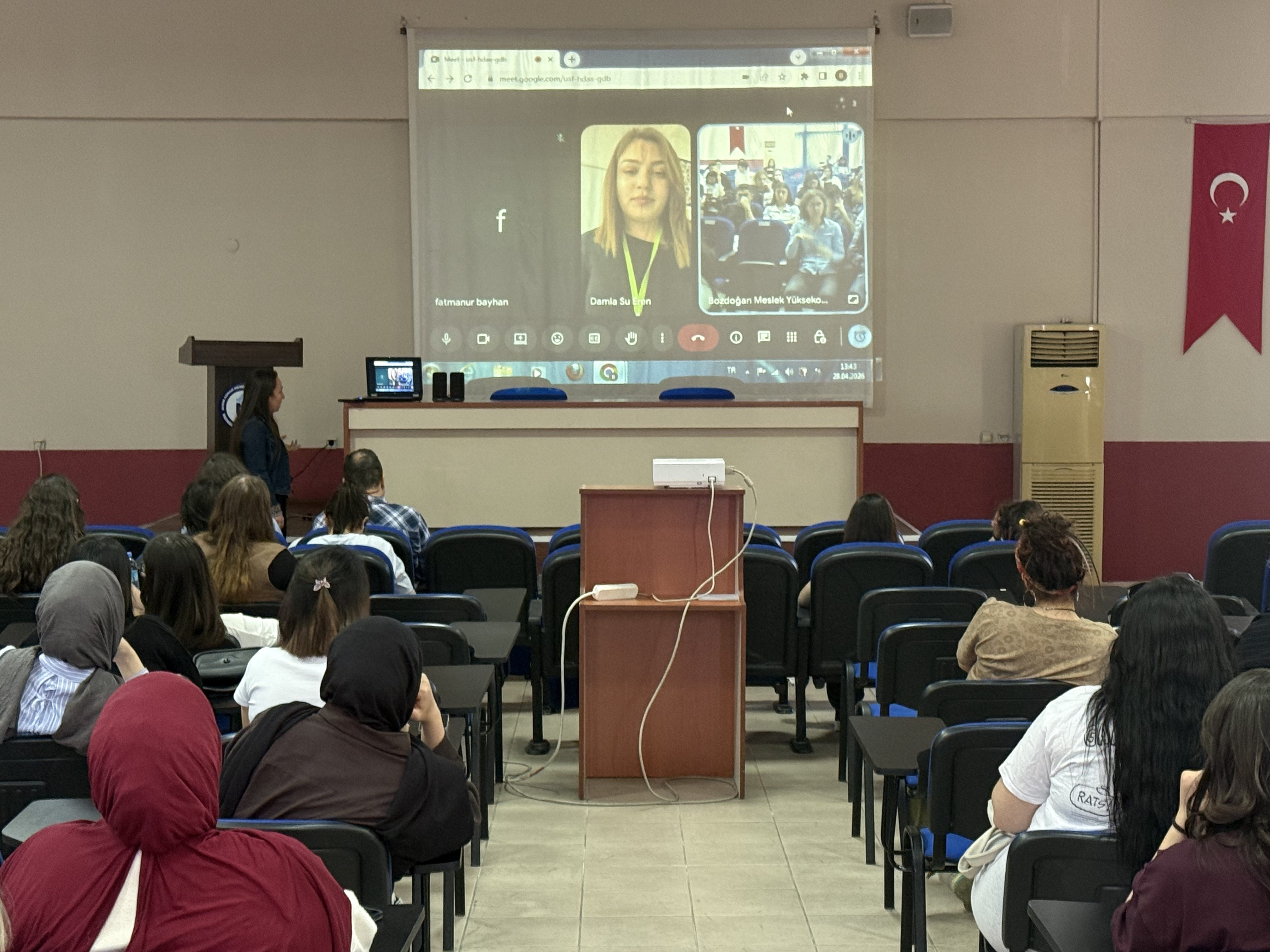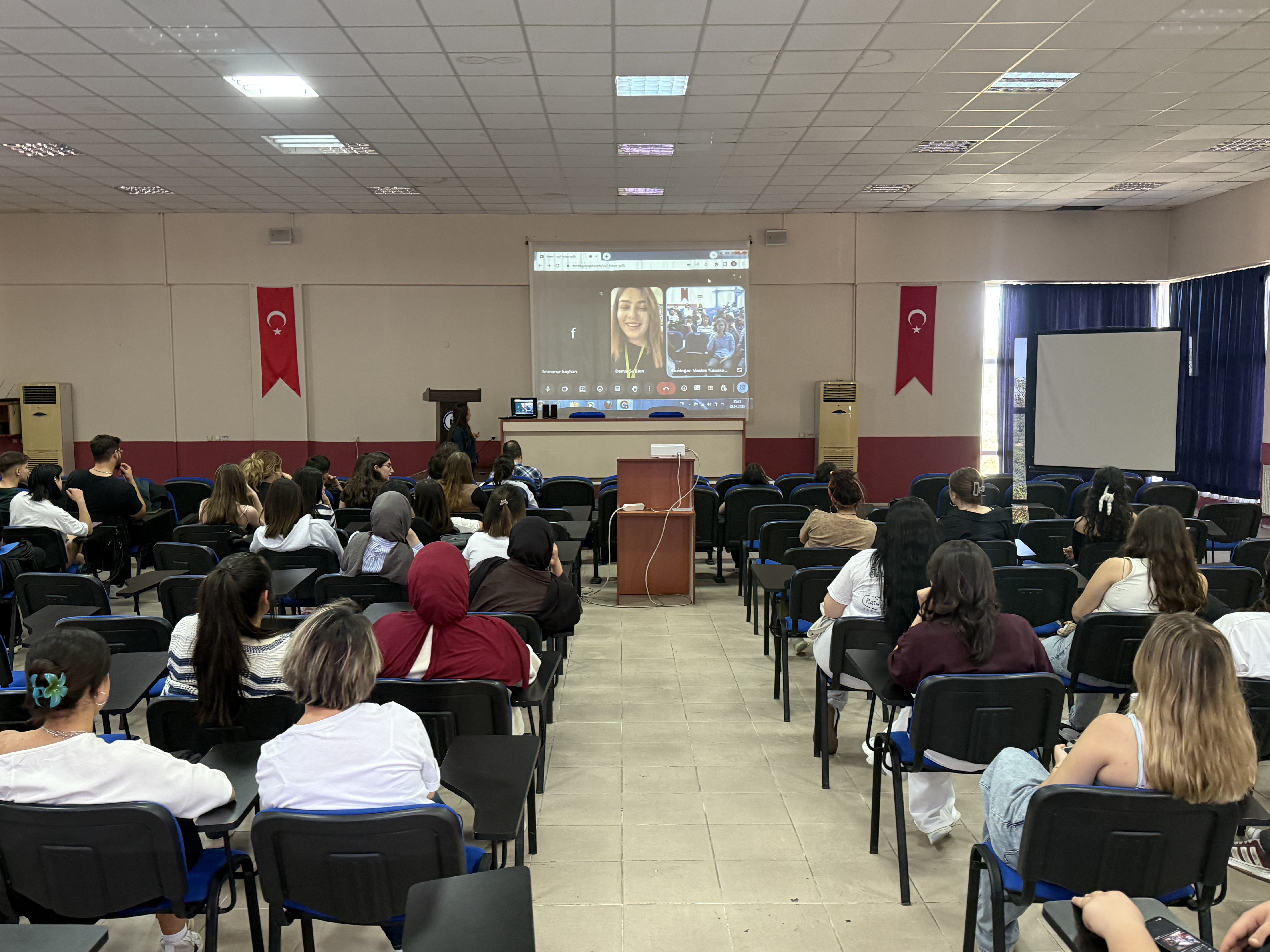 Kariyer Planlama dersi kapsamında, İşletmede Mesleki Uygulama çerçevesinde uzun dönemli staj yapan öğrenciler, deneyimlerini birinci sınıf öğrencileriyle paylaşmak üzere yüksekokulumuzda düzenlenen hibrit etkinlikte bir araya geldi. 28 Nisan 2026 tarihinde gerçekleştirilen etkinlik, hem yüz yüze hem de çevrim içi katılım imkânı sunarak geniş bir öğrenci kitlesine ulaştı.