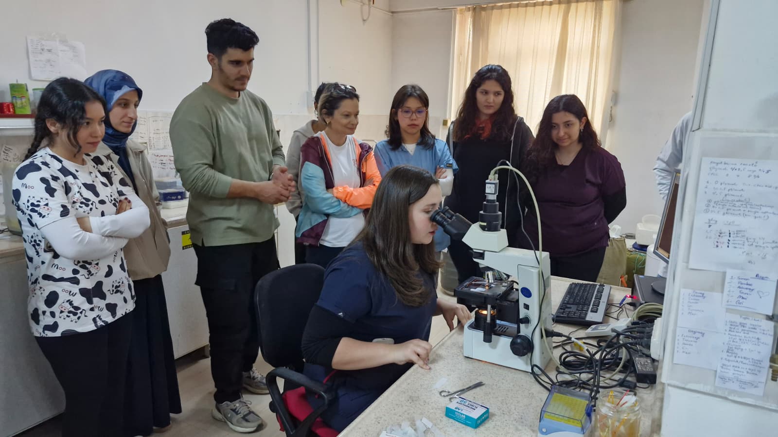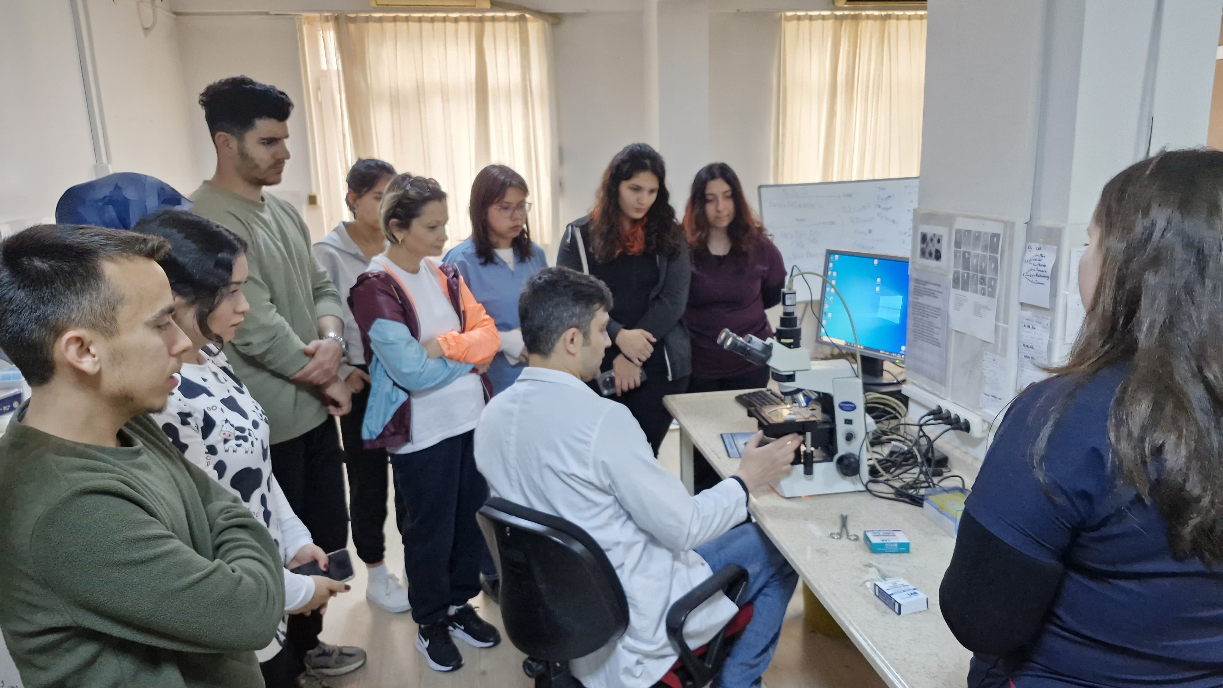 Teknik gezinin ADÜ Veteriner Fakültesi Hayvan Hastanesi bölümünde ise öğrenciler, Merkez Klinik Laboratuvarını gezerek Dr. Gamze Gültekin’den tanı süreçlerinde kullanılan cihazlar ve analiz yöntemleri hakkında bilgi aldı.