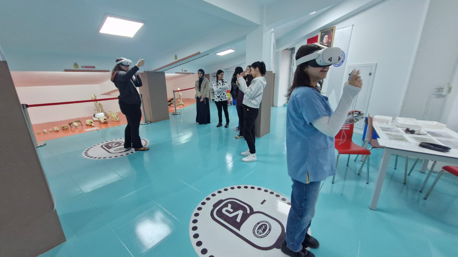 Gezi kapsamında ayrıca Veteriner Fakültesi Anatomi Ana Bilim Dalı bünyesinde bulunan DijiLAB da ziyaret edildi. Öğrenciler burada Dr. Öğr. Üyesi İ. Gökçe Yıldırım ve doktora öğrencisi Uzman Veteriner Hekim Eren Yavaş’tan dijital anatomi uygulamaları, üç boyutlu modelleme teknikleri ve modern eğitim teknolojileri hakkında bilgi edinme fırsatı buldu. Bunun yanı sıra öğrenciler, hayvan türlerine özgü anatomik yapıları üç boyutlu, etkileşimli ve katmanlı olarak incelemeye olanak veren 3 boyutlu (3D) sanal gerçeklik (VR) sistemini kullanıp deneyimledi.