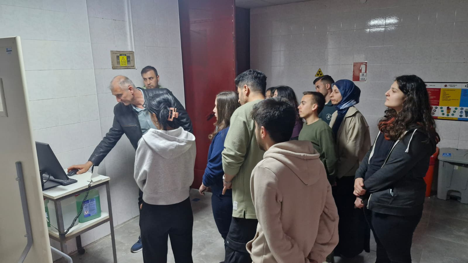 Teknik gezide öğrenciler, Hayvan Hastanesi Tıbbi Görüntüleme Merkezi’nde Hayvan Hastanesi Başhekimi Dr. Öğr. Üyesi Bilginer Tuna eşliğinde röntgen, ultrason ve diğer görüntüleme tekniklerinin kullanımını yerinde gözlemleme imkânı buldu.