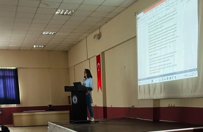 Tanıtım toplantısında konuşma yapan Özgül: “Balık sağlığında akla ilk gelen Veteriner Teknikerleri ve Veteriner Hekimler oluyor. Bizler de Su Ürünleri Mühendisleri olarak, profesyonel hayata girecek olan Laborant ve Veteriner Sağlık programı öğrencilerini ve mezunlarını hem stajlarında hem de beraber çalışarak firmamızda görmekten gurur duyarız” ifadesini kullandı. Firmalarında uygulaması yapılan “aşı, boylama ve deforme” hakkında ayrıntılı bilgi veren Özgül, firmalarının İzmir Urla’da olduğunu ve öğrencilere konaklama, yeme-içme ve ulaşım konusunda yardımcı olduklarını söyledi. Öğrencilerin staj bittikten sonra firmalarında kalıcı olarak çalışma fırsatı olduğunun altını çizen Özgül, firmalarında performansa dayalı ücret verildiğini de dile getirdi. Özgül, mezunların kendilerini geliştirdikleri sürece sektörde şeflik veya şef yardımcılığı gibi pozisyonların açıldığını ifade etti.