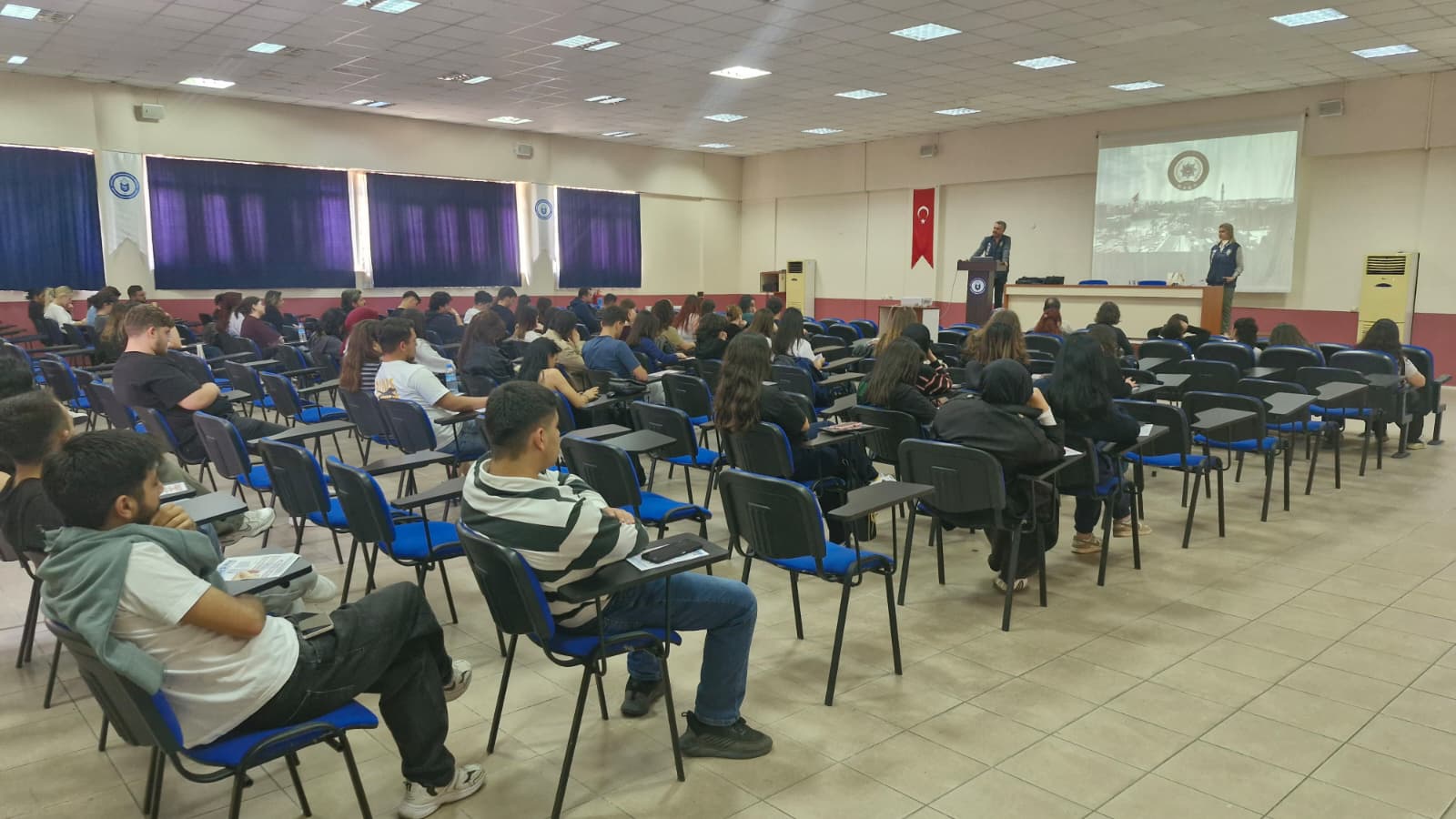 Bozdoğan Meslek Yüksekokulunda (MYO) Aydın İl Emniyet Müdürlüğü Siber Suçlarla Mücadele Şube Müdürlüğü’nde görev yapan Siber Güvenlik Uzmanları Uğur Bulut ve Buket Gül tarafından, 21 Nisan 2026 tarihinde öğrencilere yönelik “Siber Güvenlik Eğitimi” verildi.
