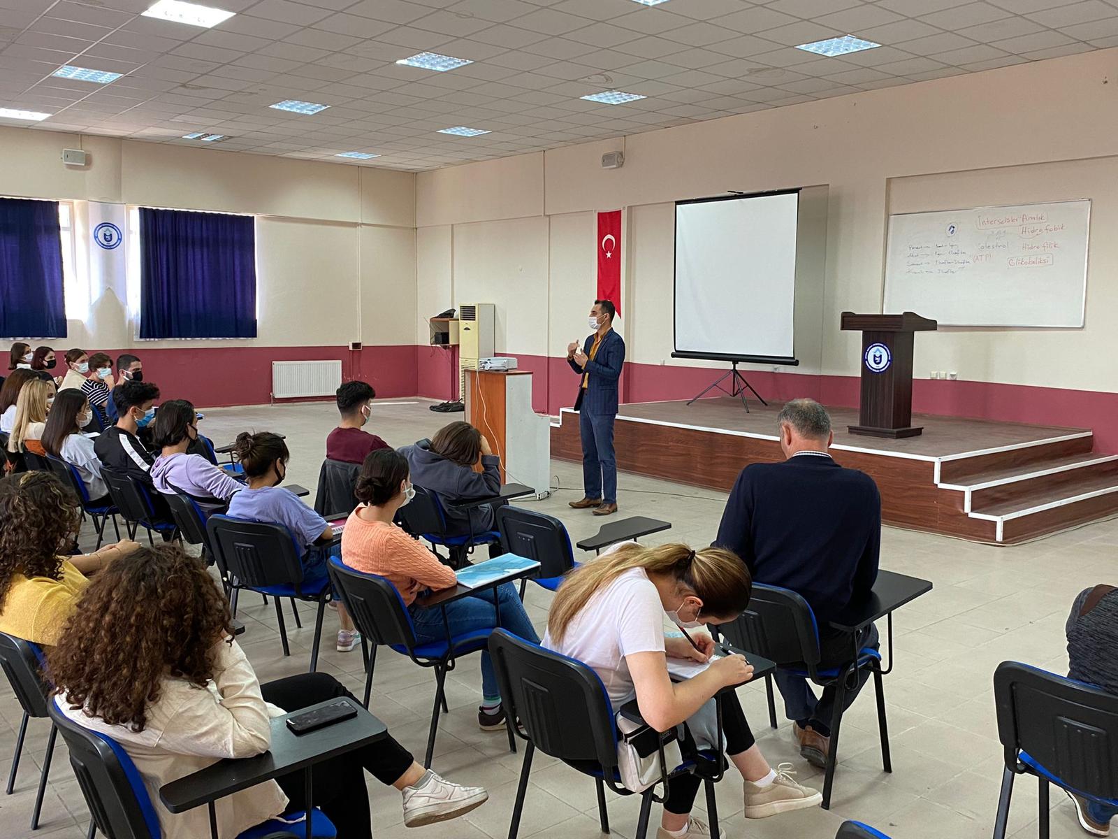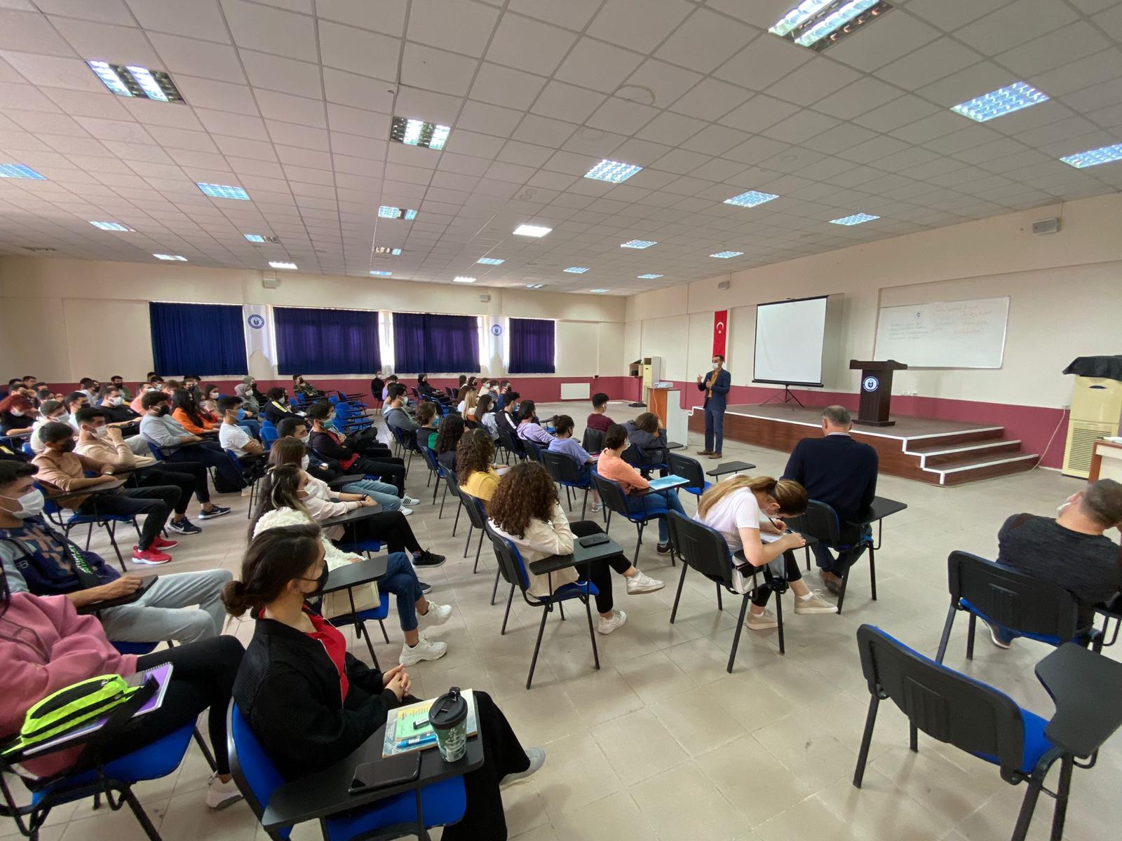Yüksekokulumuz öÄŸrencilerine yönelik Yüksekokulumuz Konferans Salonunda 18.10.2021 Pazartesi günü Geri DönüÅŸümün önemi ve Sıfır Atık Sistemi hakkında bilgilendirme eÄŸitimi verildi.