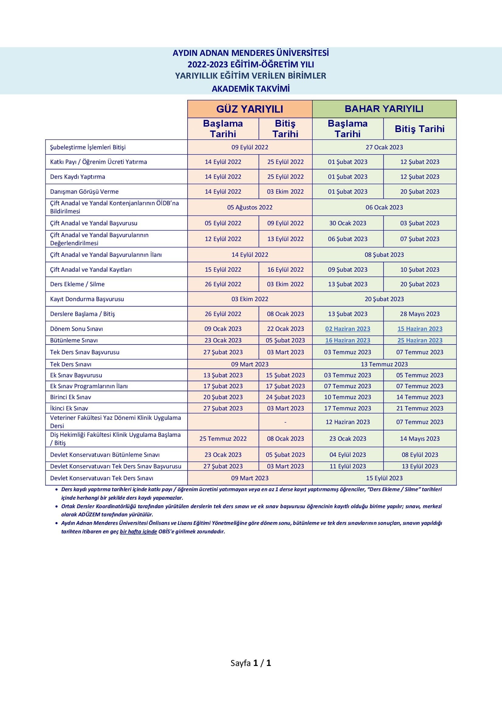 "2022-2023 YILI AKADEMİK TAKVİM"