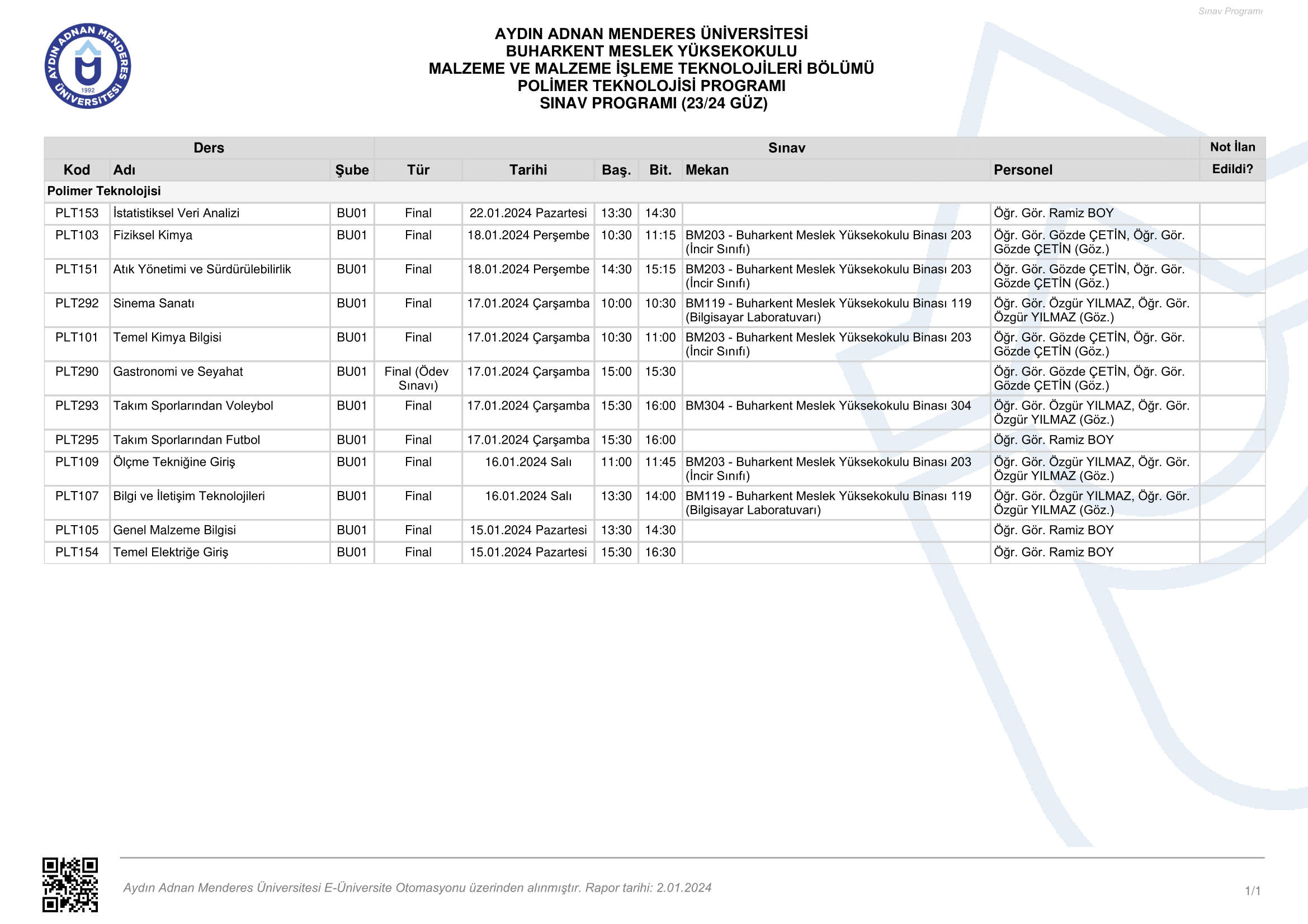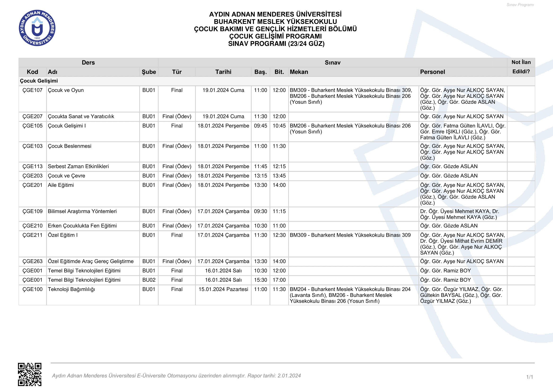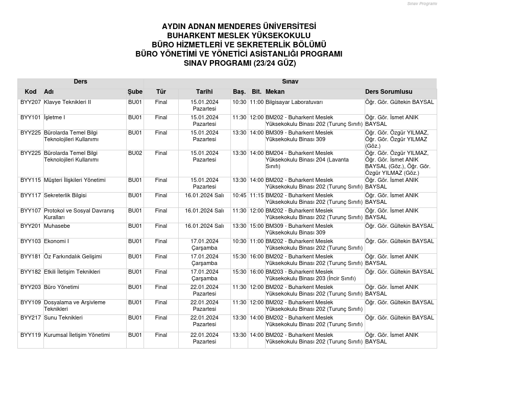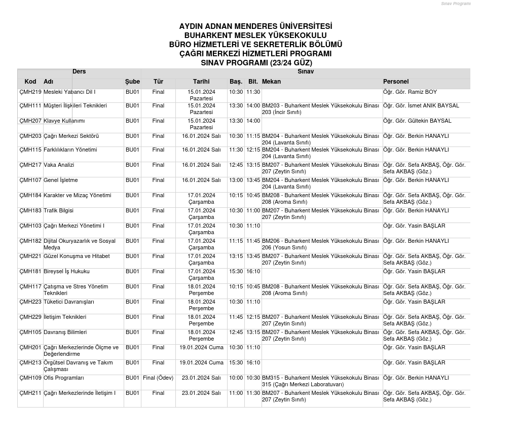 "2023-2024 GÜZ YARIYILI FİNAL SINAV TAKVİMLERİ"
