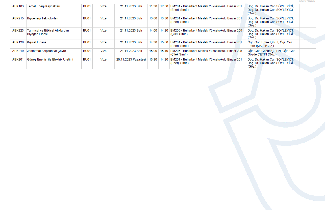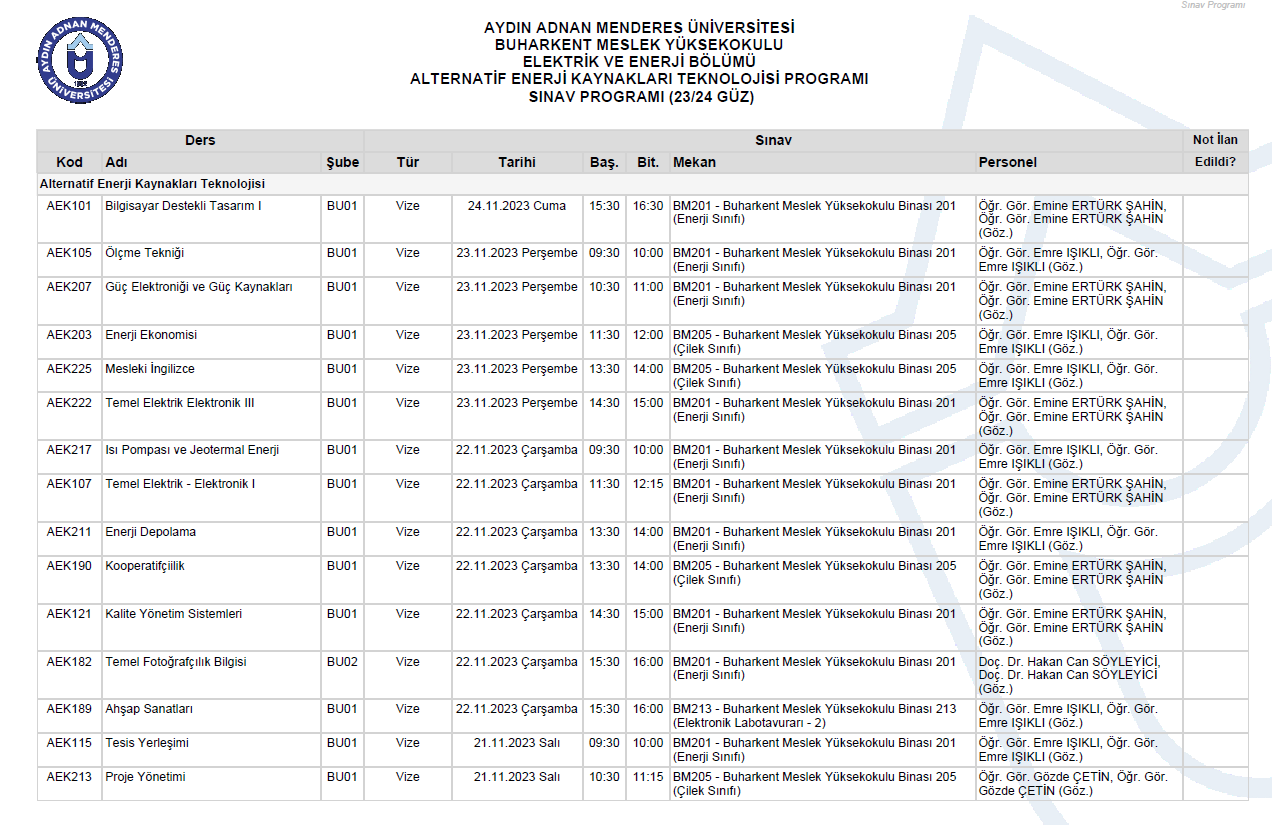 "2023-2024 YILI GÜZ DÖNEMİ ARA SINAV PROGRAMI"ALTERNATİF ENERJİ KAYNAKLARI TEKNOLOJİSİ PROGRAMI ARA SINAV PROGRAMI
