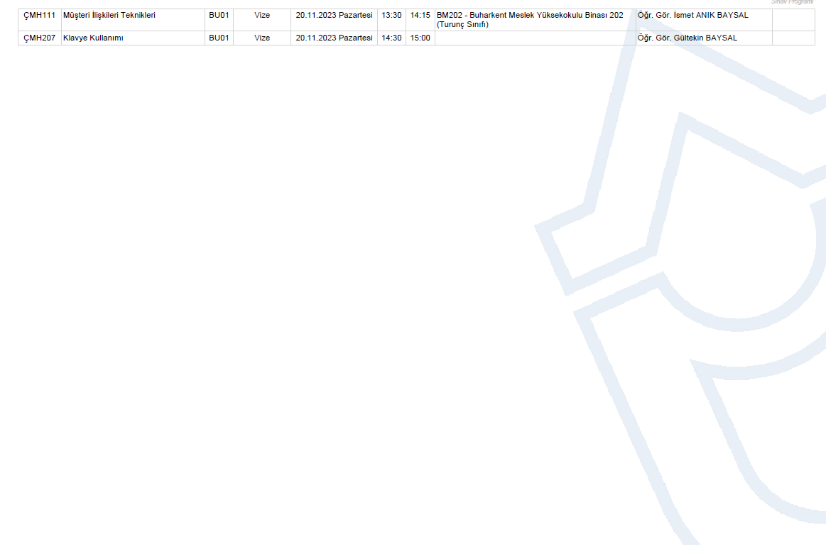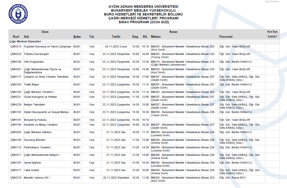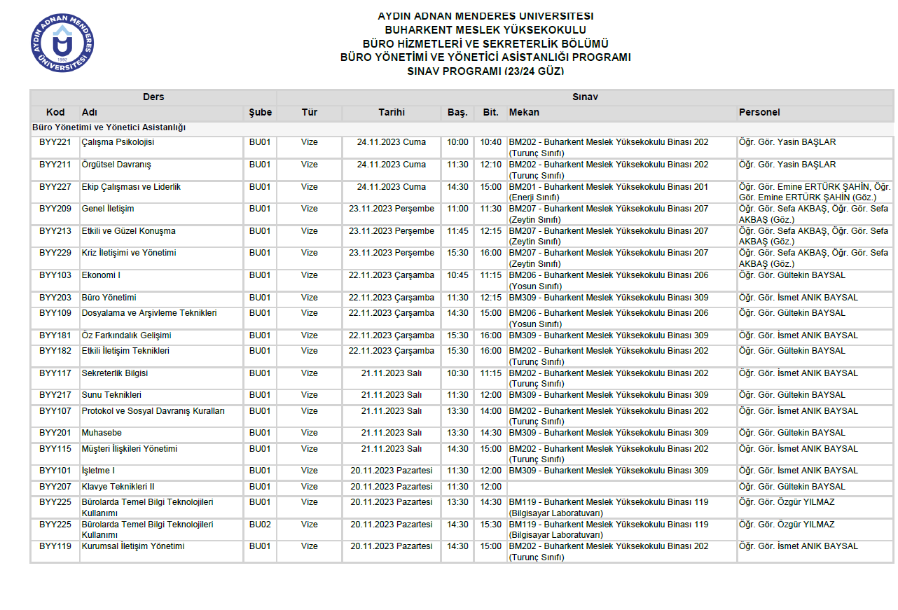 BÜRO YÖNETİMİ VE YÖNETİCİ ASİSTANLIĞI PROGRAMI ARA SINAV PROGRAMI