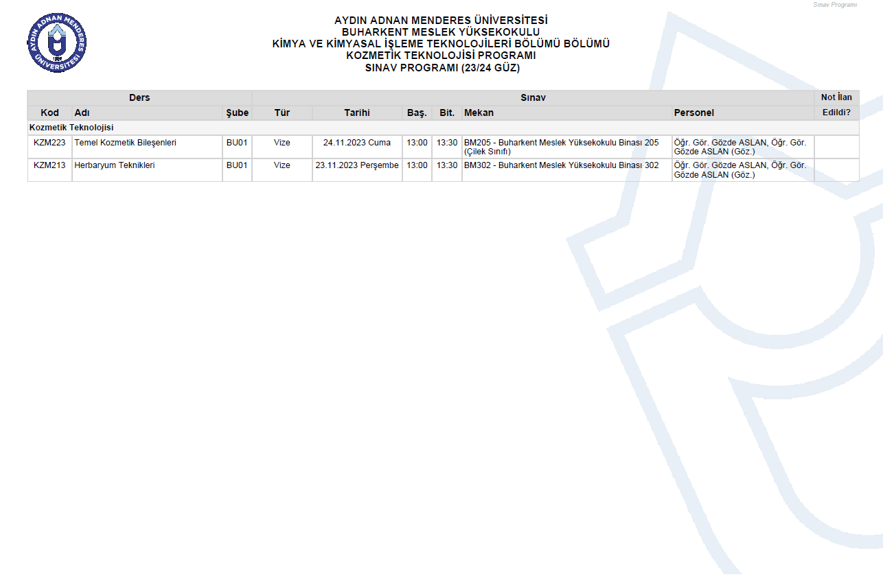 KOZMETİK TEKNOLOJİSİ PROGRAMI ARA SINAV PROGRAMI
