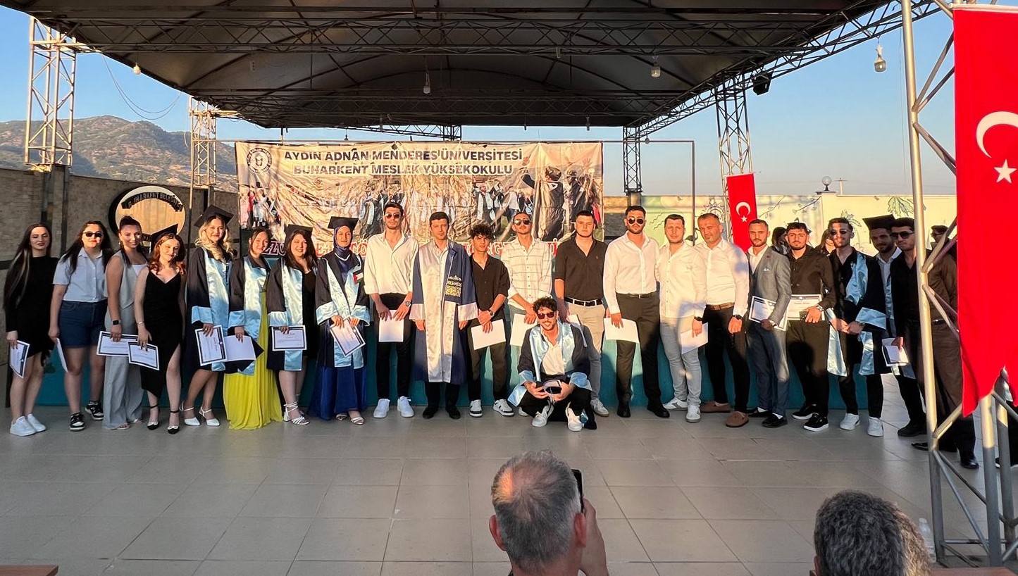 31 Mayıs 2024 Cuma günü Buharkent Belediyesi Yüzme Havuzu Sosyal Tesislerinde gerçekleştirilen törene Buharkent Kaymakamı Sayın Cuma OMURCA, Buharkent Belediye Başkanı Vekili Sayın İdris ÇAKMAKKAYA, Bozdoğan MYO Müdürü Dr. Öğr. Üyesi Bilginer TUNA, İdari ve Mali İşler Başkan Vekili Murat DURMAZ, Buharkent İlçe protokolü, akademik ve idari personelin yanı sıra öğrenciler ve aileleri katılım sağladı.