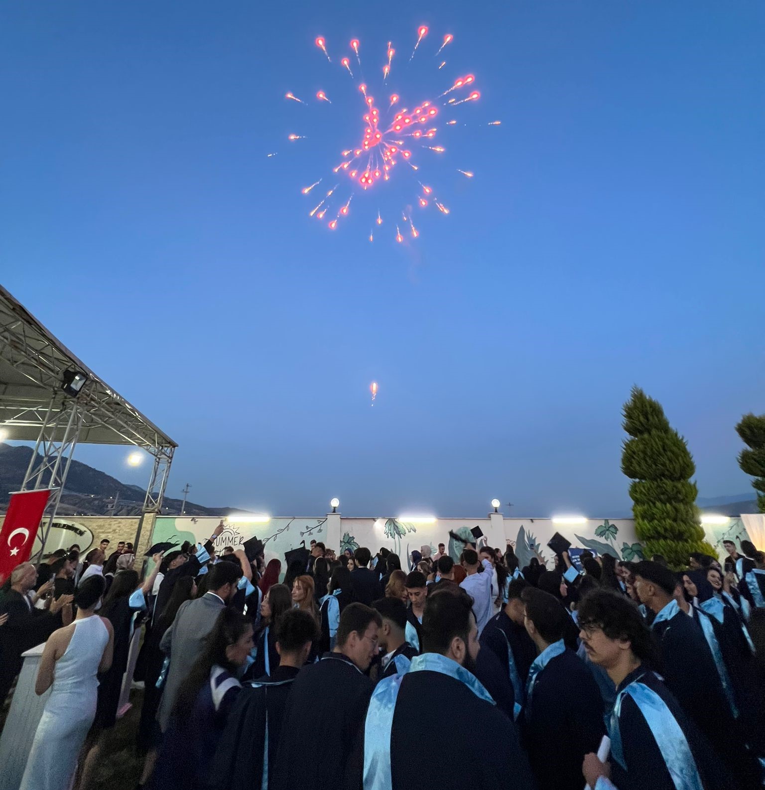 Dereceye giren öğrencilerimize plaketlerinin verilmesinin ardından, 27. ADÜFEST Kültür, Sanat ve Spor Şenlikleri Kapsamında düzenlenen ‘Spor Müsabakalarında’ başarı gösteren öğrencilerimize belge, madalya ve kupa töreninden sonra tüm öğrencilere başarı belgeleri dağıtıldı. Toplu fotoğraf çekimini takiben öğrencilerimiz tarafından heyecanla beklenen kep atma törenine geçildi.