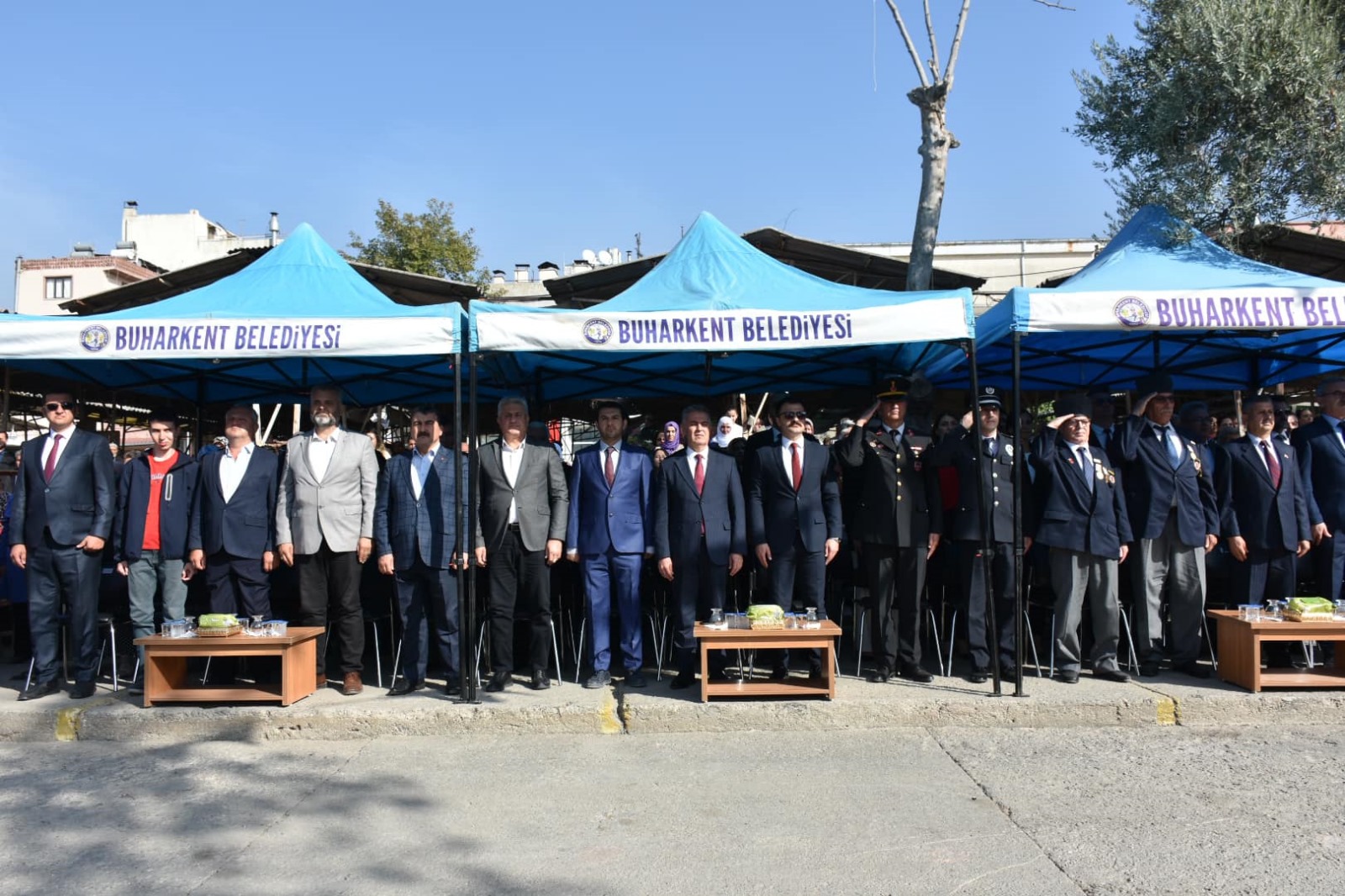 Buharkent Kaymakamımız Sayın Cuma Omurca, Belediye Başkanımız Sayın Mehmet Erol, idare amirlerimiz, İlçe Başkanımız, Meclis Üyelerimiz ve vatandaşlarımızın katılımıyla Cumhuriyet kutlamalarını coşkuyla gerçekleştirdik.