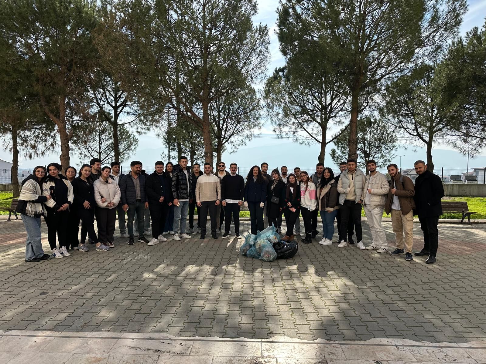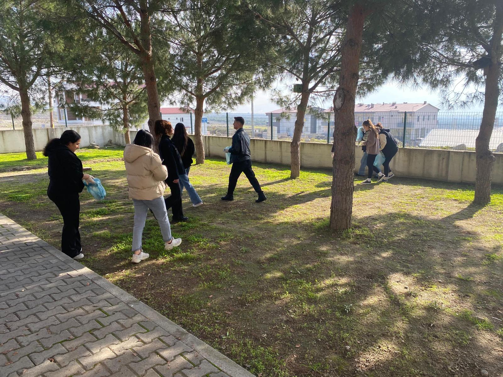 "ATIK TOPLAMA VE SINIFLANDIRMA ETKİNLİĞİ"Okulumuzda 09.01.2025 tarihinde "Çevre ve Atık Yönetimi" etkinliği düzenlendi. Buharkent MYO bahçesinde gerçekleştirilen faaliyet kapsamında "Atık Toplama ve Atıkları Sınıflandırma" çalışması uygulamalı olarak gösterildi. Akademik personelin de katılım sağladığı etkinlikte öğrencilerimizin çevre sorumluluğu kazanması hedeflendi. Buharkent Meslek Yüksekokulu Müdür Yardımcısı Öğr. Gör. Yasin BAŞLAR, programı düzenleyen Öğr. Gör. Dr. Gözde ÇETİN ve Öğr. Gör. Sefa AKBAŞ ile etkinliğe katılan tüm öğrencilerimize teşekkürlerini iletti. Etkinlik fotoğraf çekimi ile sona erdi.
