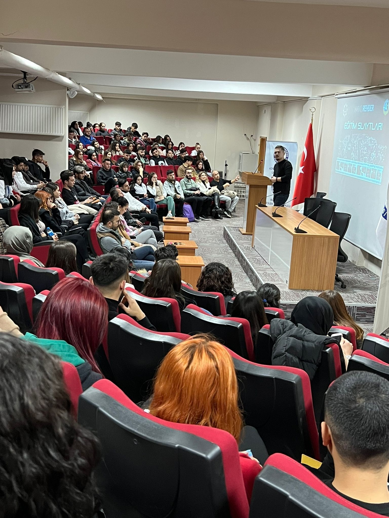 "BAĞIMLILIKLA MÜCADELE"21 Aralık Çarşamba günü Buharkent Meslek Yüksekokulu konferans salonunda Nazilli Narkotik Suçlarla Mücadele Grup Amirliği tarafından okulumuz öğrencilerine seminer verildi. Saygı duruşu ve İstiklal marşı ile başlayan program Okul Müdürümüz Dr. Öğretim Üyesi Ahmet AYTAÇ tarafından yapılan selamlama konuşması ile devam etti. Seminer kapsamında Narkotik Şube Amiri tarafından bağımlılıkla etkin mücadelede alınan tedbirler anlatıldı. Gençliğimizi fiziksel, ruhsal ve psikolojik olarak sağlıklı yetiştirmek ve her türlü bağımlılık unsuruna karşı korumak için verilen mücadelenin önemi ifade edildi. Soru cevap bölümünün ardından program sona erdi.