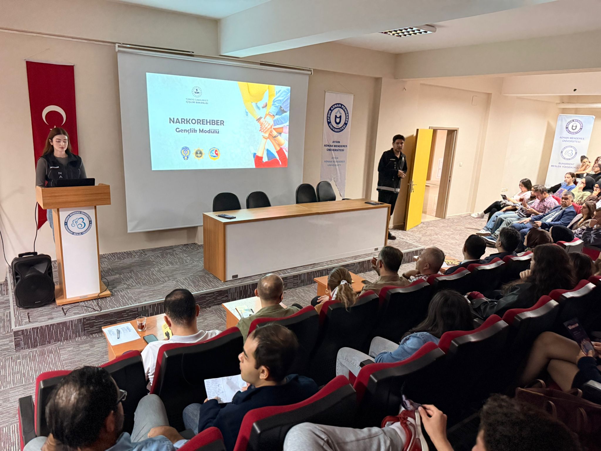 "BAĞIMLILIKLA MÜCADELE SEMİNERİ"08 Ekim 2025 Çarşamba günü Buharkent Meslek Yüksekokulu konferans salonunda birimimiz Bağımlılıkla Mücadele Ekibi öncülüğünde, Nazilli Narkotik Suçlarla Mücadele Grup Amirliği tarafından okulumuz akademik ve idare personeli ile öğrencilerine ‘BAĞIMLILIKLA MÜCADELE’ eğitimi verildi.
